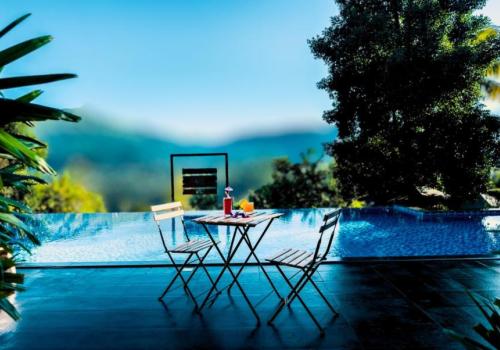 Escape to a romantic honeymoon retreat in Rajakkadu, Idukki, where breathtaking valley views and a sparkling swimming pool set the..