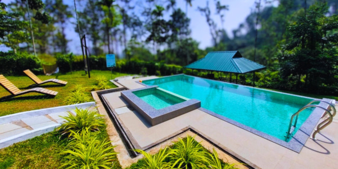 Nestled amidst the tranquil landscapes of Wayanad, this premium 3-bedroom pool villa offers an ideal retreat for families, friends..