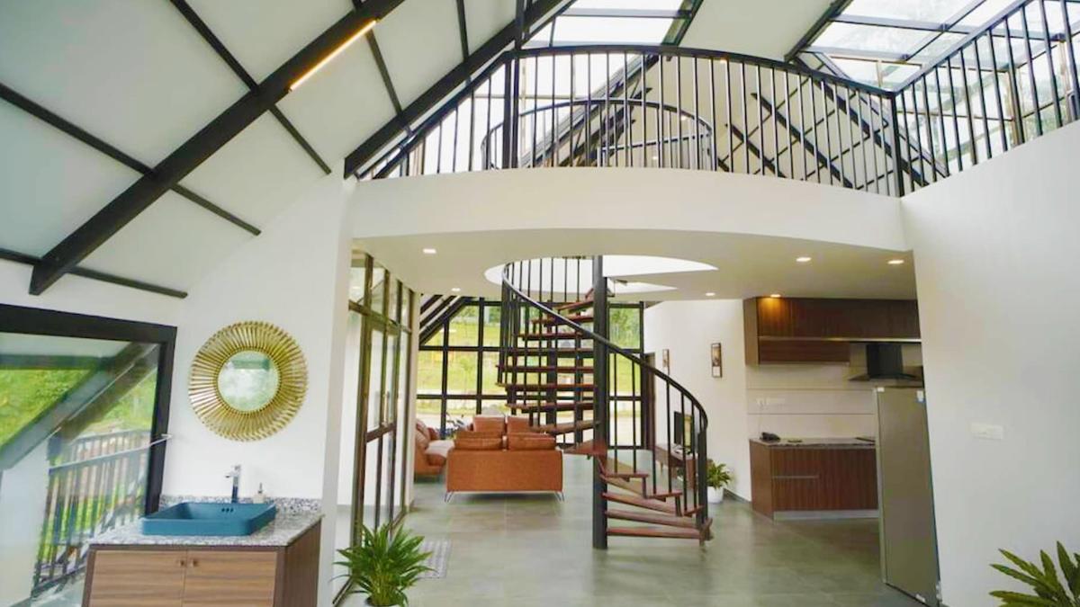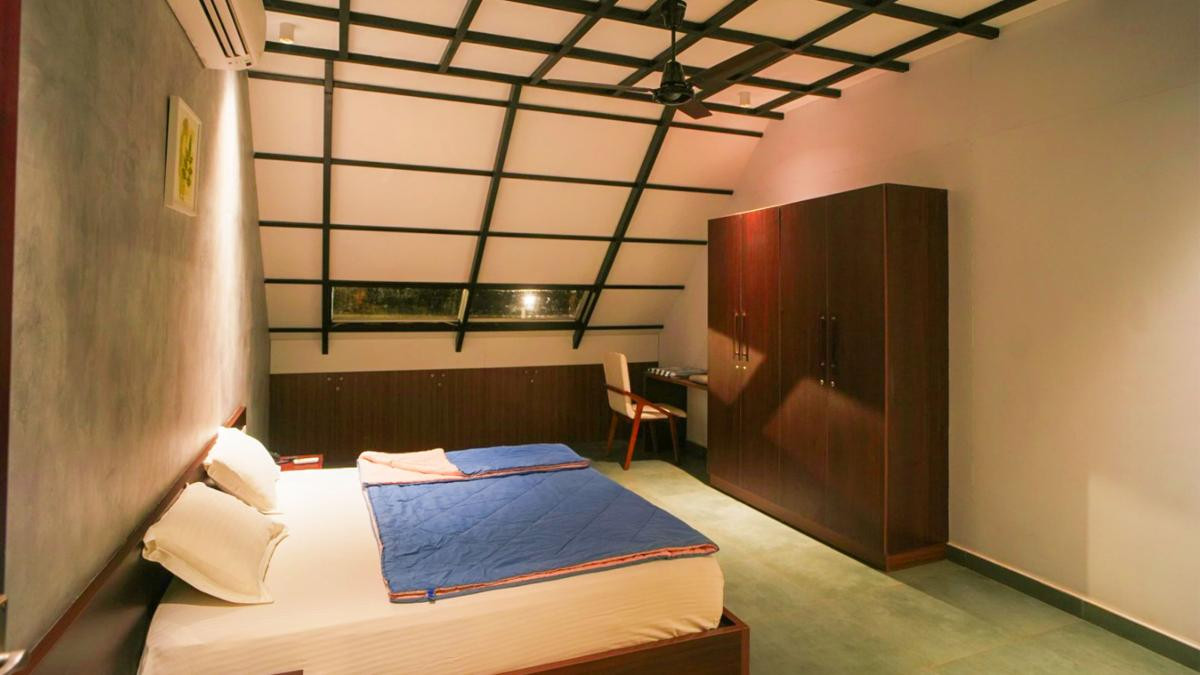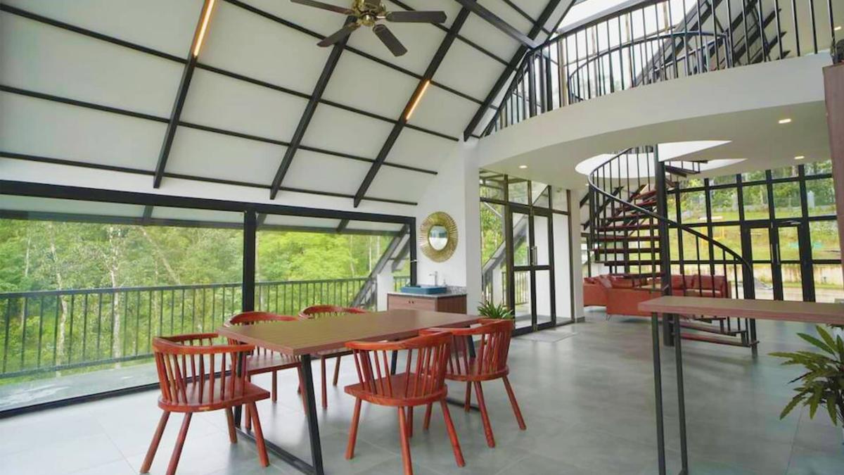 Discover this captivating 2-bedroom A-frame villa nestled in the tranquil foothills of the Banasura Mountains, Wayanad. Thoughtfully designed to blend contemporary comfort with nature’s charm, the villa features a fully equipped kitchen, inviting dining spaces, expansive balconies, and dedicated play areas. Ideal for small families or intimate groups, the property comfortably accommodates 4 guests, with a maximum capacity of up to 9 guests—ensuring both exclusivity and flexibility for your getaway.
