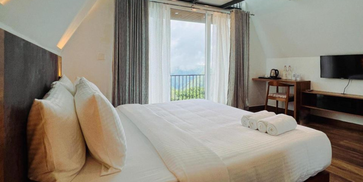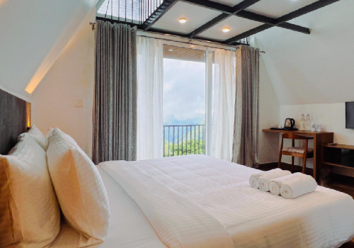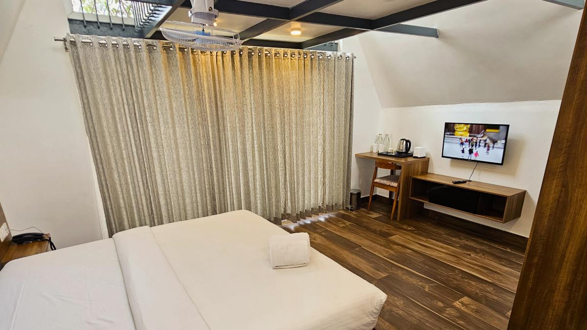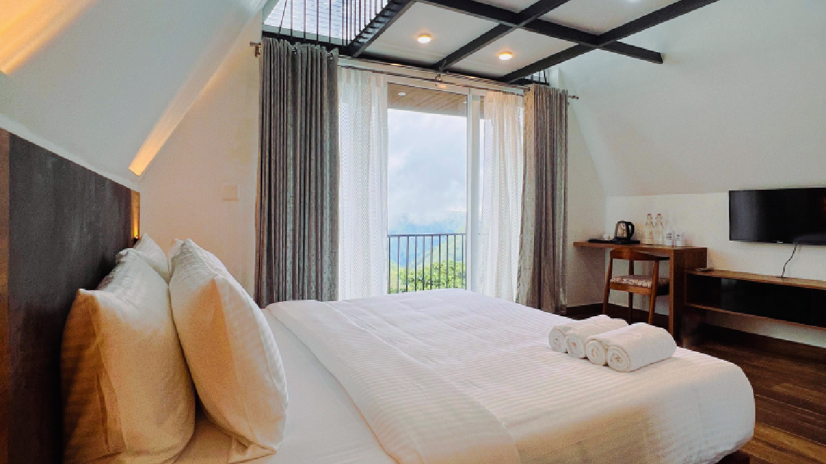 Escape to a dreamy hillside retreat in Vagamon, where six premium boutique A-frame cottages offer an unforgettable luxury stay amidst mist-covered mountains and lush valley views. Designed with comfort and elegance in mind, each cottage accommodates two guests comfortably and can welcome up to four, making the entire property ideal for small families, couples, groups, and intimate celebrations. Every cottage is thoughtfully furnished with modern essentials such as complimentary high-speed Wi-Fi, cozy bedding, a well-appointed bathroom, and a private balcony that opens to panoramic vistas—perfect for peaceful mornings with nature or magical sunsets dipped in golden light.
