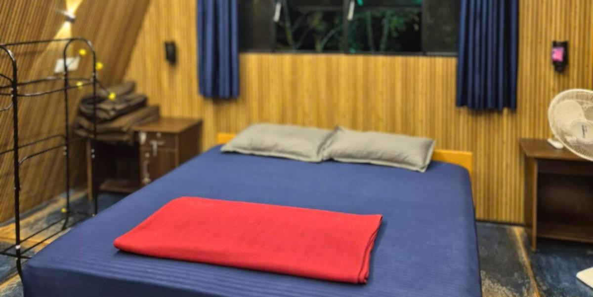 The cottage stands out with its charming A-frame architecture, blending warmth with scenic beauty. Whether you’re lounging in the garden, enjoying the fresh air from your room’s view, or sharing moments by the pool nearby, this stay brings simplicity and serenity into every corner. With a budget-friendly setup and nature all around, it's an ideal retreat for those who want to slow down, reconnect, and breathe deep.
