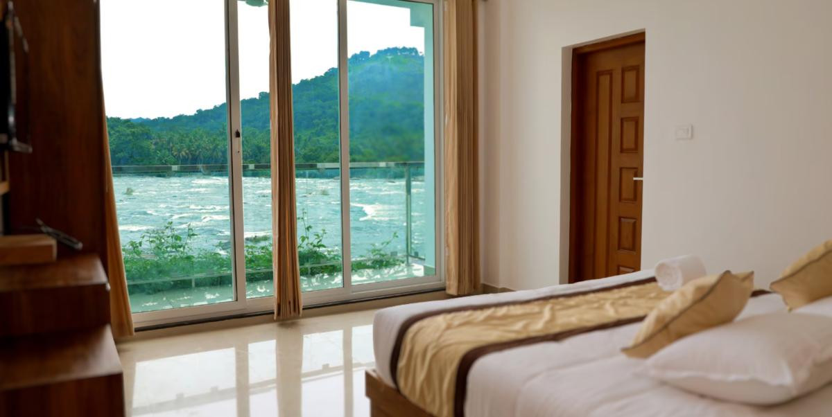 Welcome to Our Riverside Retreat in Athirappilly – a haven where comfort meets nature’s charm. Overlooking the serene Athirappilly River, our resort offers 6 well-appointed river-view rooms, each thoughtfully designed with modern amenities and cozy interiors to ensure a delightful stay. Wake up to the gentle flow of the river, enjoy your morning tea in the private balcony and seating area, and share peaceful moments with your loved ones while soaking in the stunning views. Perfect for couples and small families, the retreat creates the ideal setting for togetherness, relaxation, and memorable conversations. Guests can also take a refreshing dip in our swimming pool with river views, blending leisure with the beauty of nature. Whether it’s a romantic escape or a family getaway, our riverside resort offers the perfect balance of comfort, elegance, and tranquility in Athirappilly.