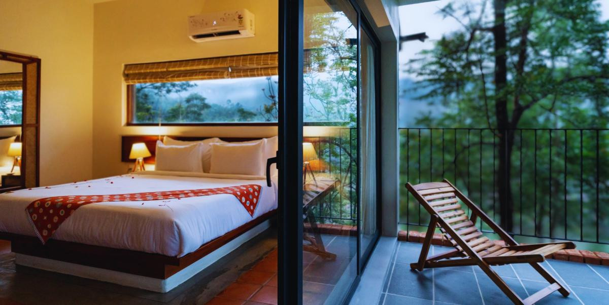Each room opens up to its own private balcony, offering uninterrupted views of ever-changing mountain hues — where the mist drapes itself over hills like a silk shawl and the wind carries whispers of stillness. Whether you're stretching into the morning light or sipping twilight tea, nature is always just one glance away. Inside, you’ll find interiors that soothe — spacious, elegant, and adorned with curated details that balance form and feeling. An infinity pool floats on the edge of the world, blending sky, water, and wonder in one fluid breath.