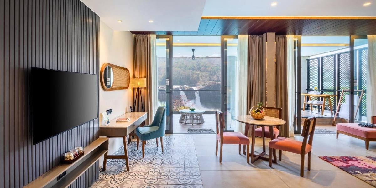 Welcome to our luxurious Athirapilly retreat, where the majesty of waterfalls meets the serenity of the mountains. Designed for those who seek indulgence in the lap of nature, our resort offers four distinct room categories, including two with private jacuzzis overlooking breathtaking views — the perfect choice for couples and families craving an elevated stay. Every room is spacious, elegantly designed, and comes with a private balcony that opens to the enchanting sights of cascading waters and mist-kissed hills. Modern amenities blend seamlessly with warm hospitality, ensuring your comfort at every step. Savor delicious cuisines at our in-house restaurant, where every meal is crafted to complement the natural beauty that surrounds you. Whether it’s a romantic escape, a family holiday, or a luxurious getaway with friends, our Athirapilly resort invites you to immerse yourself in refined comfort, panoramic views, and the timeless charm of nature.