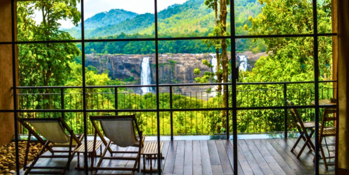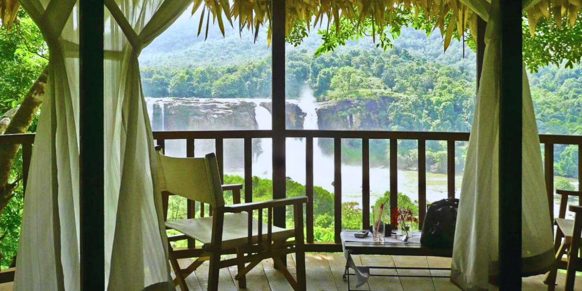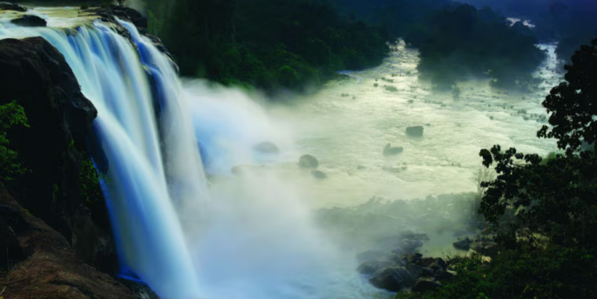 Perched beside the timeless Athirappilly Falls, where rivers weave love songs through emerald forests and the mist rises like a ..