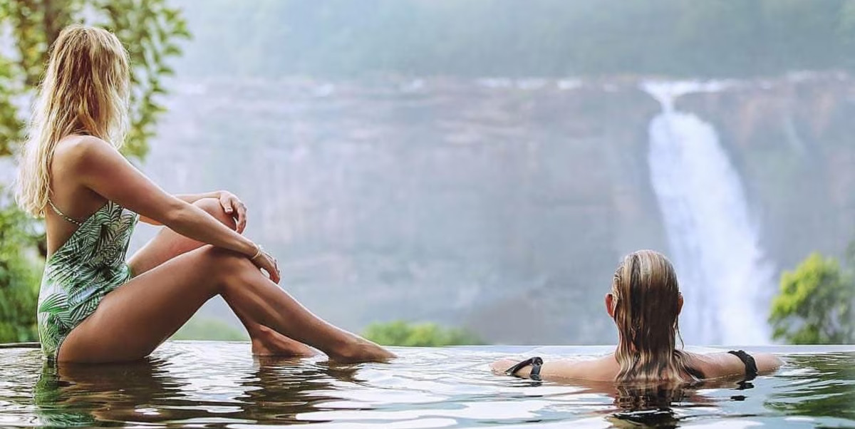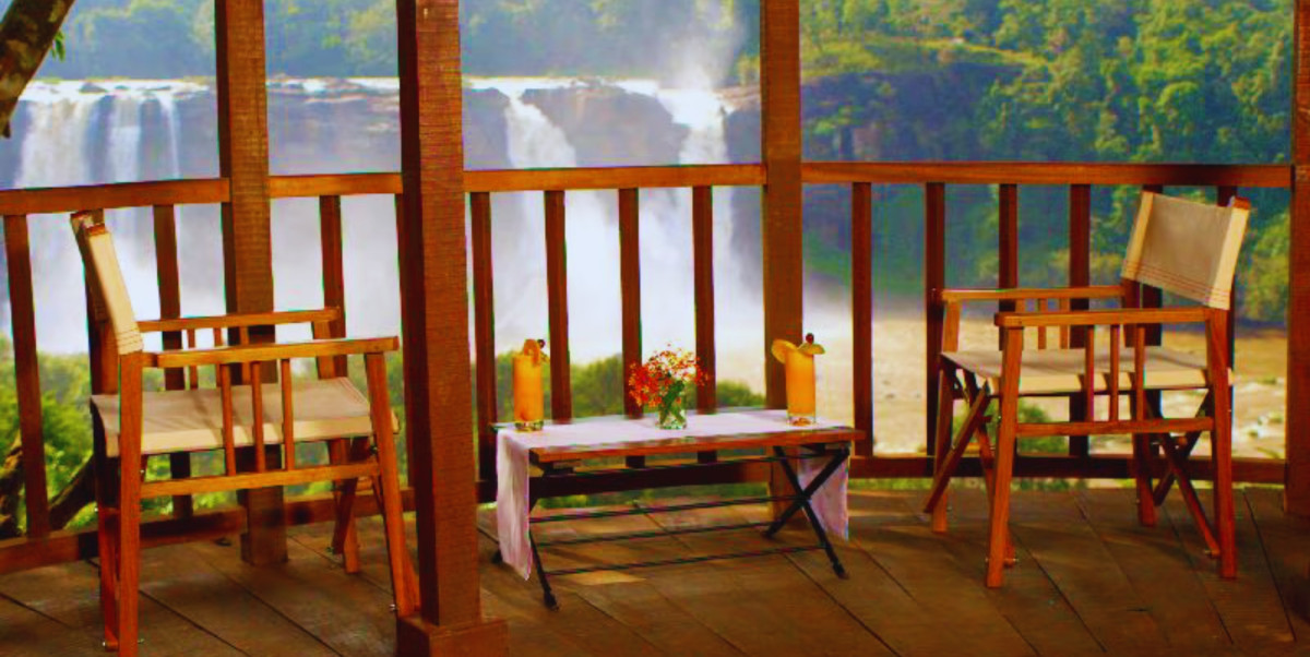 Step into your private treehouse, where polished wooden interiors glow warmly, and every corner whispers intimacy. From your balcony, the majestic cascades unfold before your eyes — silver veils tumbling through misty valleys, their eternal song becoming the soundtrack of your love. Wake to golden dawns spilling light across the falls, sip coffee as the forest hums with life, and let each moment feel like a dream suspended between earth and sky.