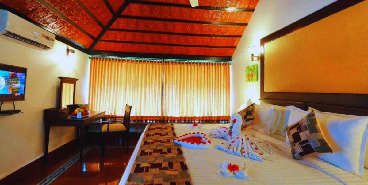 Wake to the soft shimmer of the pool and the gentle whispers of the river just beyond your suite, where mornings begin in calm and love flows as endlessly as the waters. Sip tea on your private balcony with fingers entwined, let your hearts slow to the rhythm of nature, and soak in serene riverside views that set the tone for unforgettable days together. Inside, heritage-inspired design, warm tones, and soulful touches create a cocoon of comfort—a timeless sanctuary where every glance, smile, and shared breath feels like forever. Step outside, and adventure awaits: drift hand-in-hand on a private boat ride, paddle through backwater lagoons on a kayak, or explore hidden islands that echo with quiet magic.