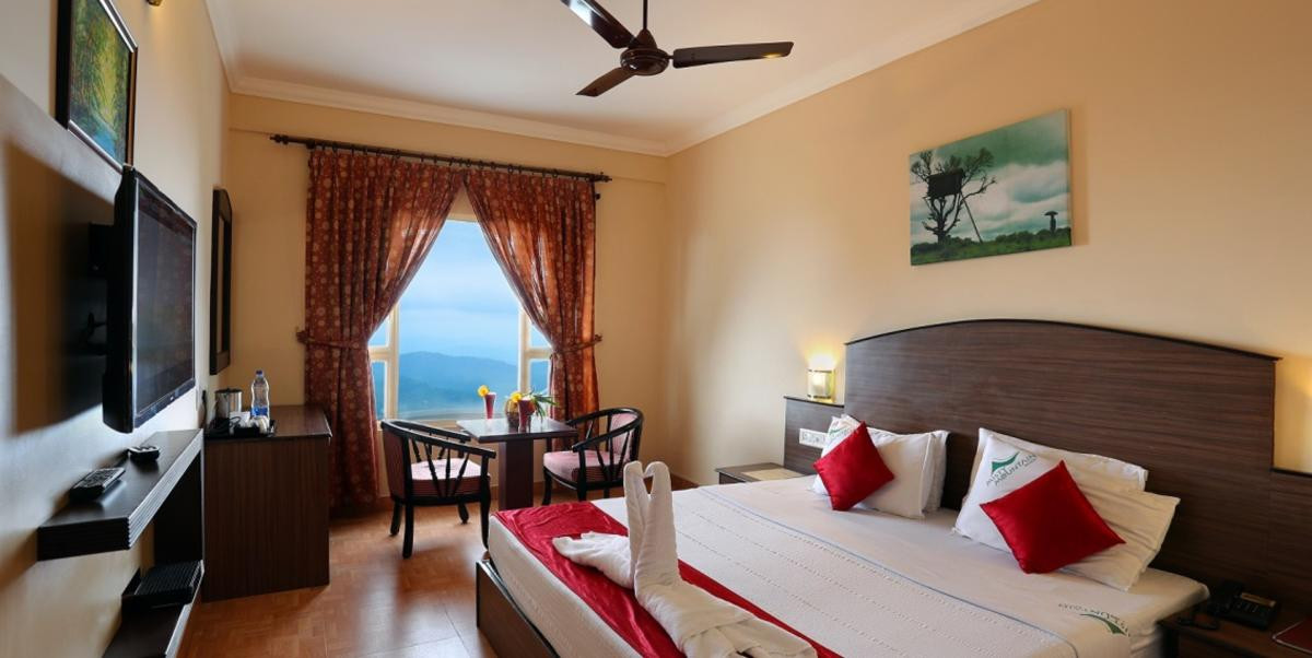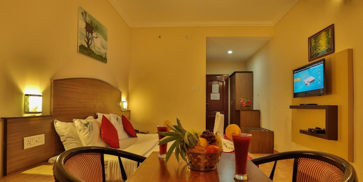 Cradled in the misty embrace of Munnar’s rolling hills and carpeted in lush greenery, our luxury jacuzzi honeymoon suite is not just a destination—it’s a chapter of your love story. From the moment you arrive, romance greets you with a lovingly arranged fruit basket and a decadent honeymoon cake, setting the stage for days filled with tenderness and joy.