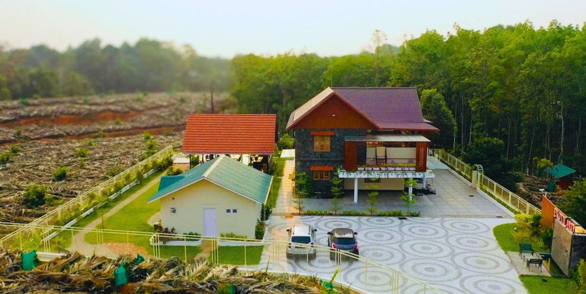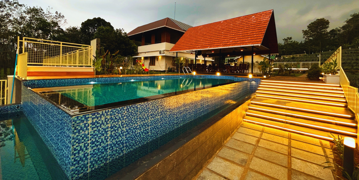 Spread across a lush 6.5-acre fruit farm plantation, this farmstay in Kadavoor is a nature lover’s haven and a true countryside retreat. With sprawling greenery, organic plantations, and the soothing charm of village life, it offers guests an immersive experience where relaxation and freshness go hand in hand. The property features a modern infinity swimming pool with a dedicated kids’ pool, perfect for families and friends to unwind while soaking in serene views. Accommodation includes a spacious 5-bedroom stay with a fully equipped kitchen, blending rustic warmth with homely comfort, ideal for both short and long holidays.