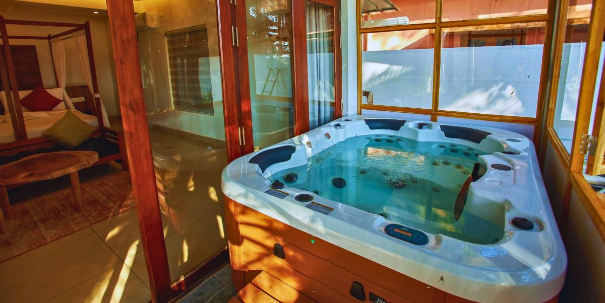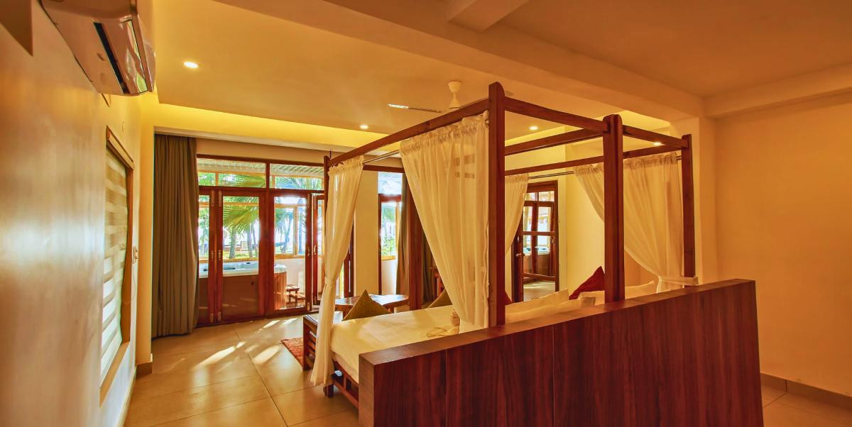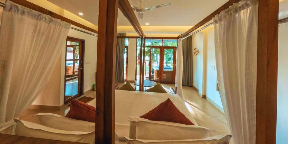 Perched on the majestic cliffs of Varkala, where the land gently meets the lull of the Arabian Sea, Solmera Jacuzzi Sea View Suite is a sanctuary sculpted for two hearts in rhythm. This intimate escape isn’t just a place to stay—it’s where your honeymoon blooms between golden sunrises and moonlit tides, with every moment crafted for romance and renewal. Wake up in a spacious suite where love lingers in every breeze and beauty flows beyond the windows. Your private Jacuzzi overlooks the endless blue, inviting you to soak in serenity as waves dance below and time slips quietly away. Whether it’s a bubbly morning dip or a starlit soak, this is where togetherness deepens.