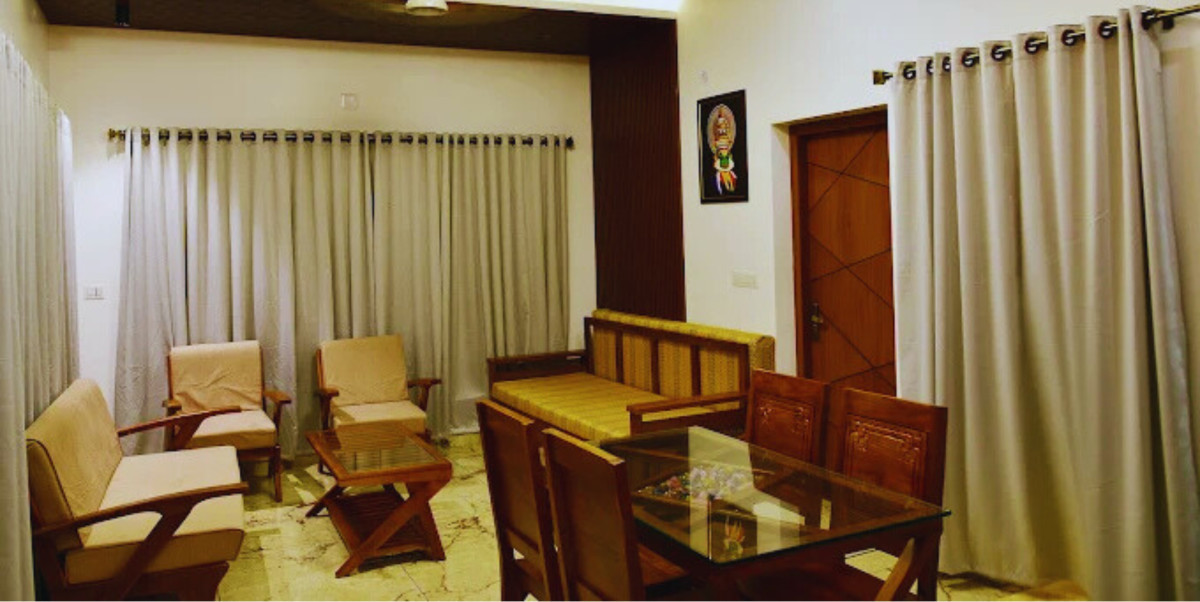 Welcome to our Standard Villa, a charming 4-bedroom retreat nestled in the serene hills of Vagamon. Designed with space and comfort in mind, this villa comfortably accommodates up to 12 guests, with a maximum capacity of 15—making it ideal for family gatherings, bachelor parties, business trips, birthday celebrations, or casual get-togethers. The villa features a well-equipped service kitchen, stocked with all the essentials for your cooking convenience. Thoughtfully provided basic amenities ensure a relaxing, hassle-free stay, so you can focus on creating unforgettable memories with your loved ones.