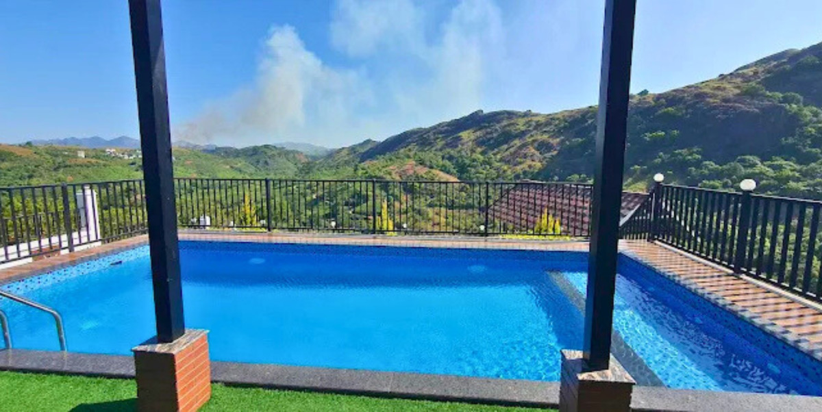 The villa is family and bachelor-friendly, catering to a variety of guests. You can relax and unwind in the infinity swimming pool, taking in the serene surroundings. Free parking is available for your convenience. For families with children, there is a dedicated play area where the kids can have endless fun and entertainment. Stay connected with complimentary Wi-Fi throughout the property, allowing you to stay in touch or stream your favourite shows. Experience the luxury of 24-hour hot and cold water, ensuring a refreshing shower at any time of the day. The villa offers breathtaking valley and mountain vistas, providing stunning views that will leave you enchanted. Indulge in endless pool adventures, swimming and lounging in the beautiful surroundings. If you're feeling adventurous, you can explore the area on a cycling tour. Enjoy unparalleled privacy as you unwind in the enchanting garden, surrounded by the beauty of nature. The villa also features a perfect spot for BBQ and a campfire, allowing you to gather with your loved ones and create unforgettable memories.