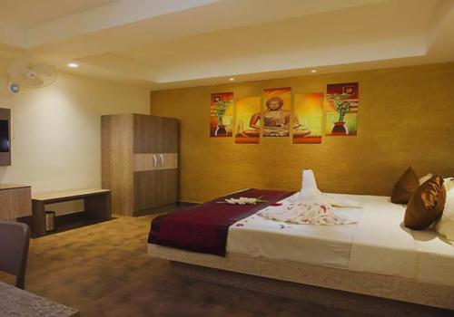 Step into your hidden sanctuary in Vagamon, where the mountains rise in misty silence and nature whispers its secrets through every breeze. Carved like a dream into the heart of the earth, your cave-style honeymoon suite is a world designed for two — a place where love feels timeless, intimate, and eternal. From the wide opening that frames the rolling hills, watch the valleys wrap themselves in morning mist, the peaks glowing like guardians of your love story.
