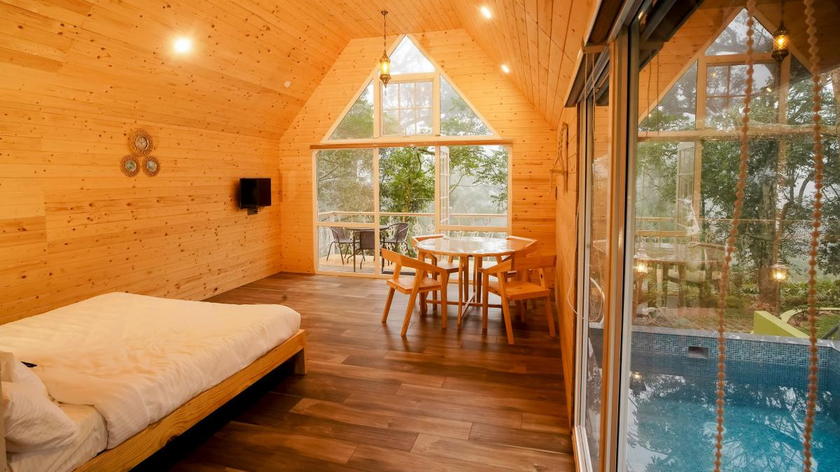 Enjoy a private pool, complimentary tea, snacks, barbeque, dinner, and even a jeep safari. Family and bachelor-friendly, the property offers free Wi-Fi, a poolside gazebo, wooden interiors, private balconies, and direct pool access from each room. Immerse yourself in the serene forest surroundings and relax in style with great amenities and a charming ambience.