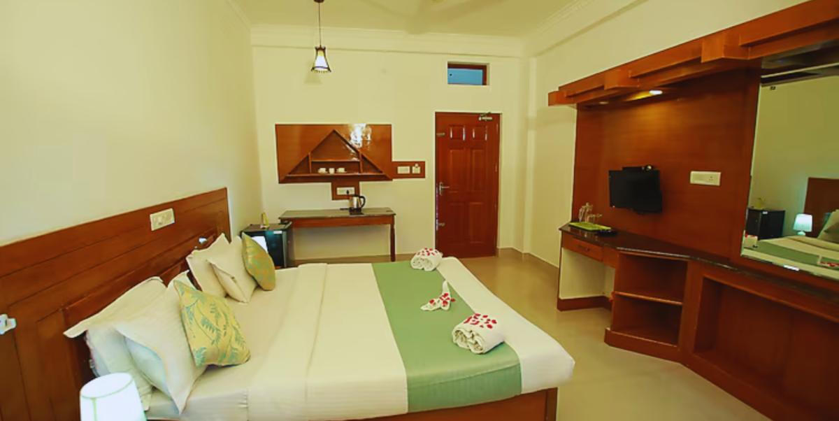 Escape to a cozy honeymoon suite in Thekkady, where romance meets adventure amidst the lush jungles of the Western Ghats. Perfect for budget-friendly couples, this retreat features a private balcony overlooking the forest canopy—offering a serene backdrop for golden sunsets, soothing breezes, and intimate conversations. Your honeymoon is made even more memorable with special touches—a beautifully decorated flower bed, a delightful honeymoon cake, and a candlelight dinner under the stars. For those who love adventure, the jungle surroundings invite you to explore nature trails by day and relax by a warm campfire at night. To complete the experience, couples can also indulge in a rejuvenating spa session, designed to refresh both body and soul. Whether you’re dreaming of peaceful moments together or seeking a touch of jungle adventure, this Thekkady hideaway offers the perfect balance of romance, comfort, and unforgettable experiences—without stretching your budget.