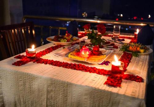 As evening falls, the world fades away and love takes center stage. Under a sky embroidered with stars, savour a romantic candlelight dinner crafted exclusively for two—each bite a celebration of your bond.