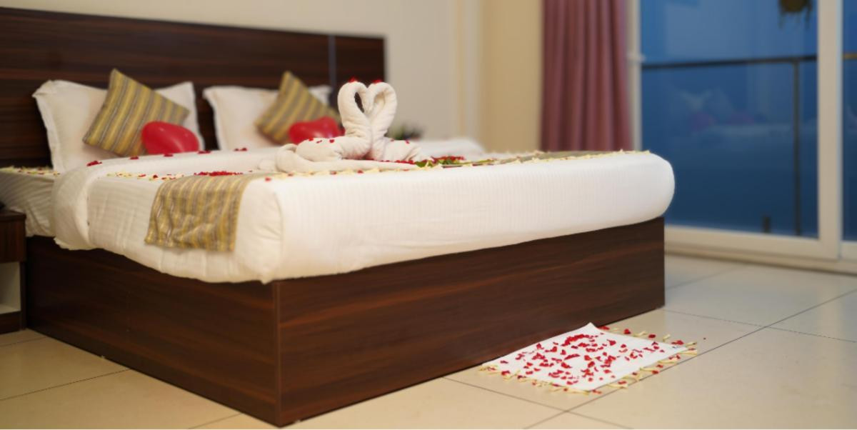 A beautifully arranged fruit basket will be available upon request . Guests can enhance their romantic getaway with specially curated experiences such as a candlelight dinner, a flower bed decorated with balloons, and a half-kilogram honeymoon cake. These memorable touches are available at an additional cost and are designed to create the perfect setting for love and togetherness during your stay.