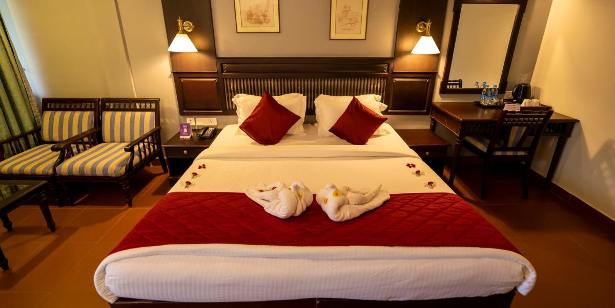 Escape to an elegant executive honeymoon suite in the heart of Munnar, where love blossoms amidst misty hills and panoramic mounta..