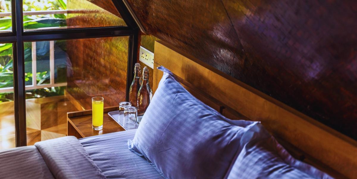 Tucked amidst the misty slopes of Munnar, our charming A-frame cottage offers a one-of-a-kind stay that blends rustic charm with the cool, refreshing vibes of Munnar’s climate. With 2 spacious beds accommodating up to 4 guests, this cottage is the perfect retreat for families, small groups, or couples seeking a cozy getaway in the hills. Step inside and experience the warmth of a true A-frame design—featuring soaring ceilings, intimate interiors, and picture-perfect views of the lush greenery surrounding you. Whether you’re sipping tea while watching the mist roll in, sharing stories by the window, or simply soaking in the tranquil silence, every corner radiates comfort and charm. To make your stay even more special, we offer complimentary experiences, including a thrilling jeep safari, guided trekking adventures, and a cozy campfire night under the stars. Together, they add just the right touch of adventure and warmth to your mountain escape. This cottage isn’t just a stay—it’s a blend of nature, coziness, and memorable moments, crafted to make your Munnar experience unforgettable.