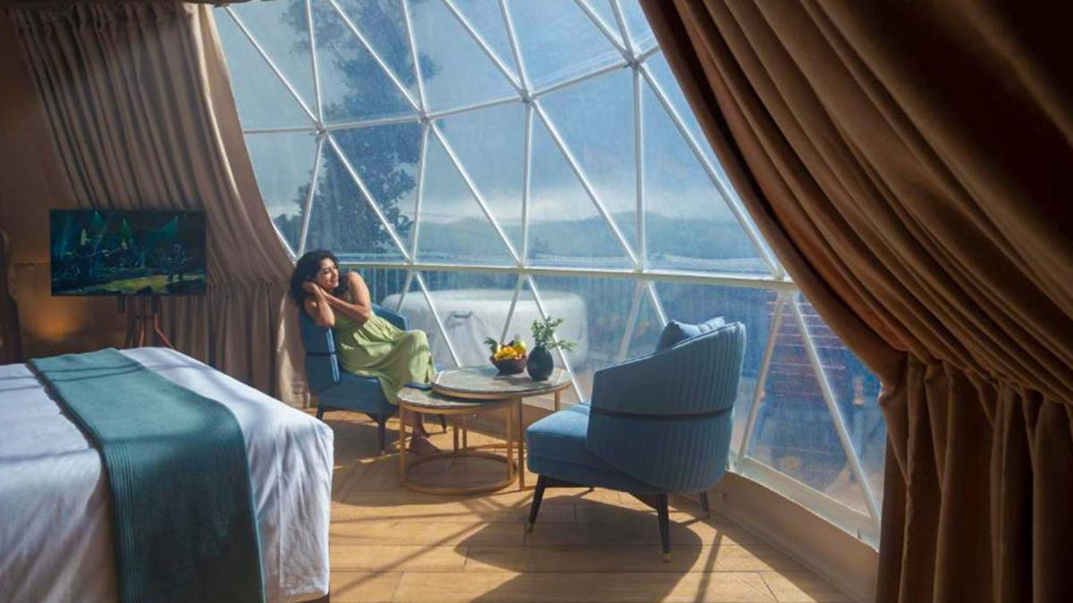High above the world’s noise, where mist curls through emerald plantations and pine-scented winds wander freely, awaits a sanctuary designed for two souls in love. This is not just a dome — it is a dream made real, a place where romance rises with the morning sun and lingers like starlight over Vagamon’s velvet peaks.