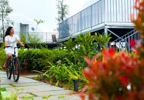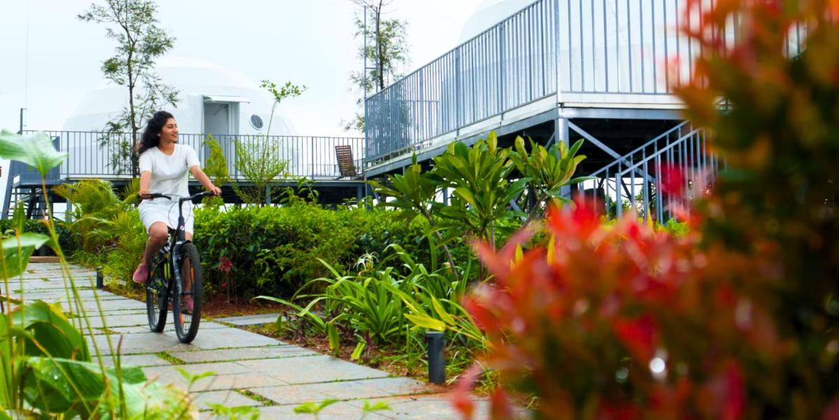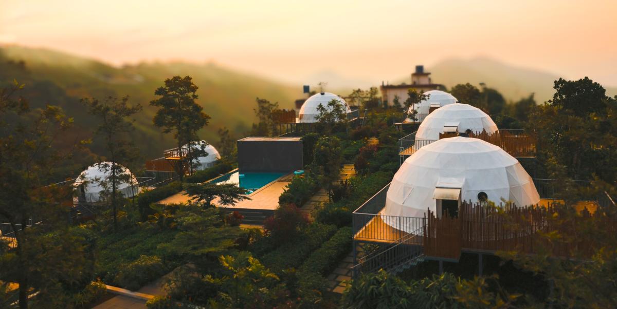 As twilight paints the horizon in shades of gold and violet, step onto your secluded balcony, hand in hand, and let the silence of the hills sing your love song. Here, in your hidden dome, time slows, hearts glow, and the world exists only for two.