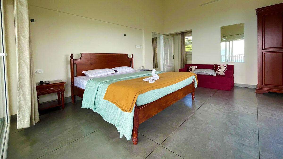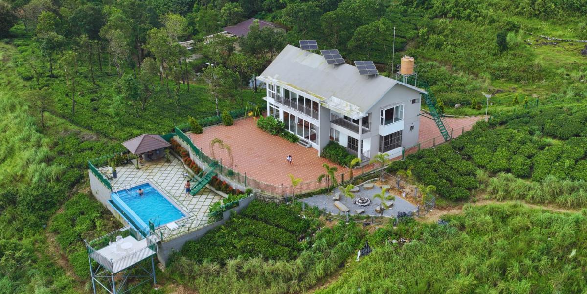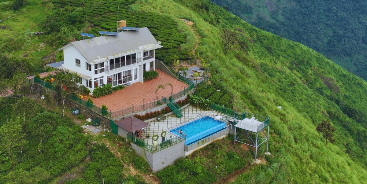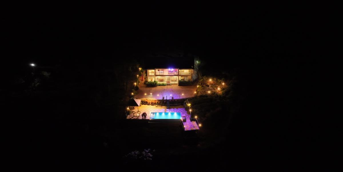 This villa is a dream come true for nature lovers. It is located on a mountain peak with a panoramic view of the breathtaking landscape. From your rooms and pool, you can gaze at the endless mountains. The infinity pool and balcony are perfect spots to watch the sunset and the sky changing colours. You can go on a plantation trekking and it will let you explore the natural beauty of Vagamon. The villa ensures your privacy and peace for a relaxing stay. It also has a DJ dance floor with a laser show, a campfire and a BBQ area, and a bar counter for fun with your friends and family. Also, there are modern amenities such as Wi-Fi and TV. The kitchen and the driver’s room are available here. This beautiful home welcomes families and bachelors and can host up to 8 people, a maximum of 16 pax. This villa is a paradise for nature lovers and party animals. You can experience the best of both worlds and create unforgettable memories with your loved ones.