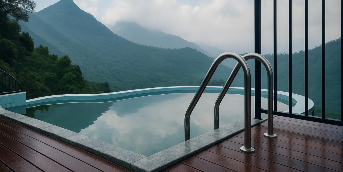 Perched on a scenic slope with sweeping views of the Western Ghats, one suite features a private jacuzzi overlooking the serene valley, while the other invites you to unwind in a luxurious bathtub set beside panoramic windows. Whether you're sipping coffee on your private balcony wrapped in the morning mist or sharing a candlelit dinner under the stars, every moment is designed to celebrate togetherness.