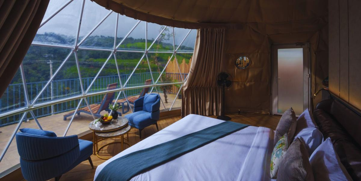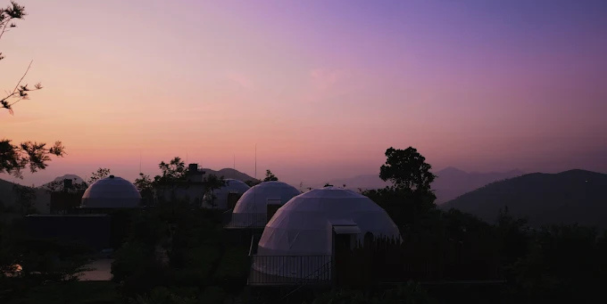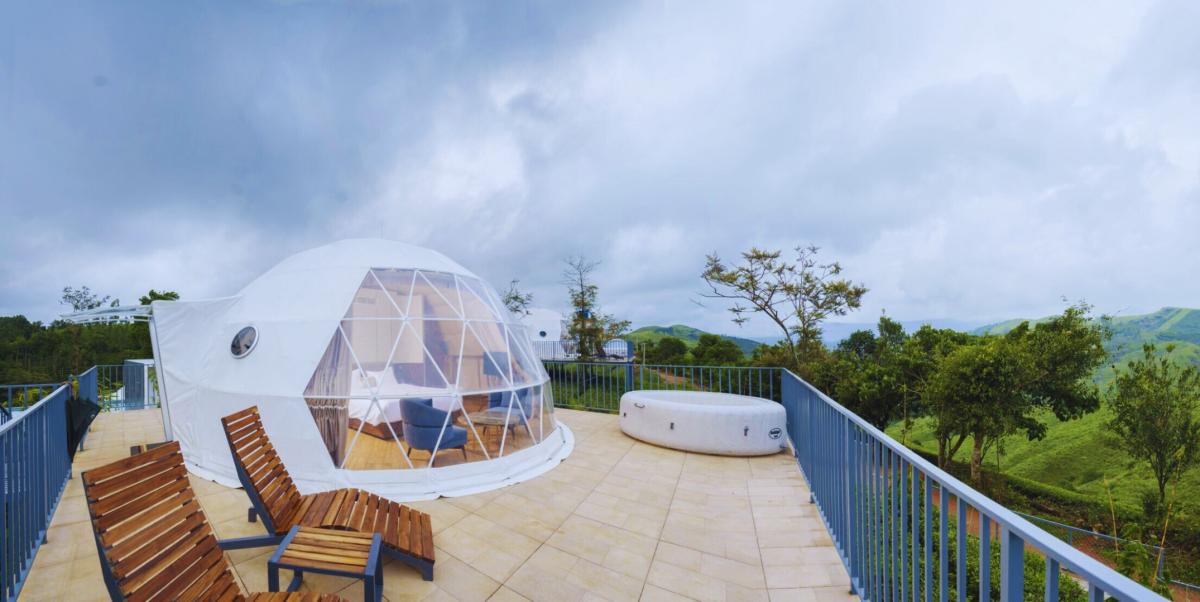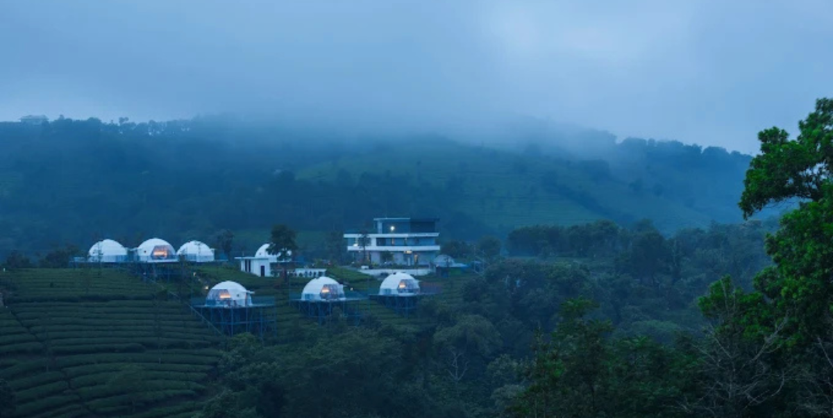 Step into a world of elevated outdoor living at Kerala’s trailblazing glamping destination, nestled in the tranquil landscapes of Vagamon. This exclusive retreat features seven architecturally designed luxury domes, each offering an intimate and immersive experience of the Western Ghats’ tranquil beauty. Escape to nature without compromising on comfort at Kerala’s first luxury glamping resort, nestled amidst the misty hills of Vagamon. This exclusive retreat features seven architecturally designed luxury domes, each offering an intimate and immersive experience of the Western Ghats’ tranquil beauty. Guests can enjoy a curated selection of essential amenities, attentive service, and personalized experiences designed to elevate their stay—from cozy fire pits under the stars to guided nature walks and bespoke dining options. Whether you're seeking a romantic escape, a quiet solo retreat, or a unique family vacation, this luxury glamping resort in Vagamon promises an unforgettable fusion of adventure, comfort, and natural charm.