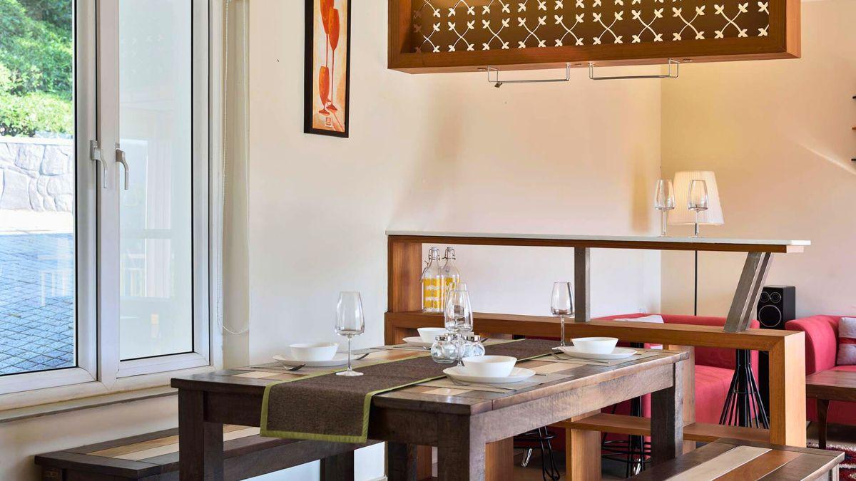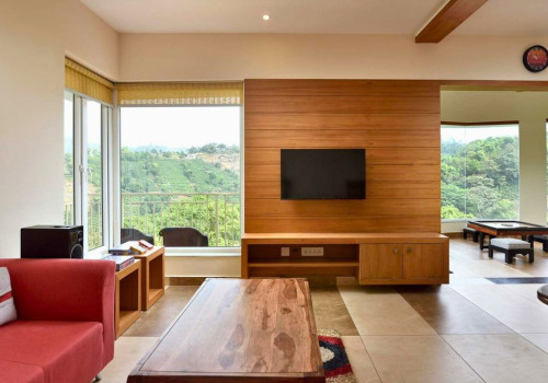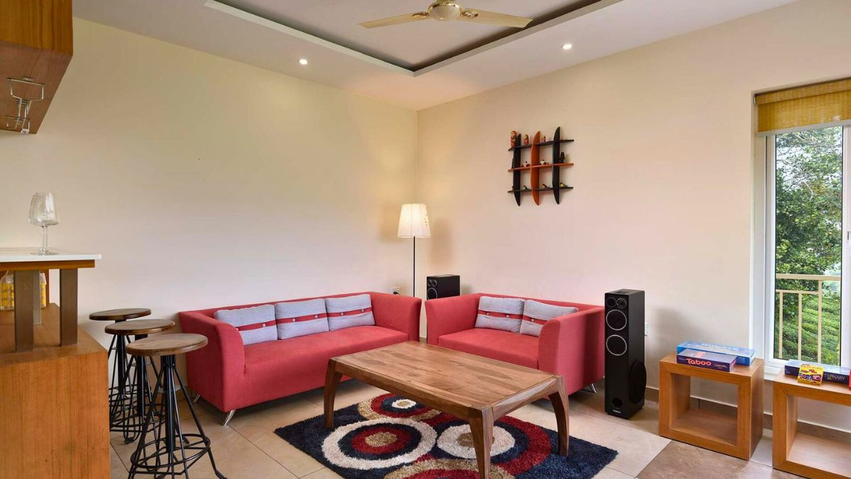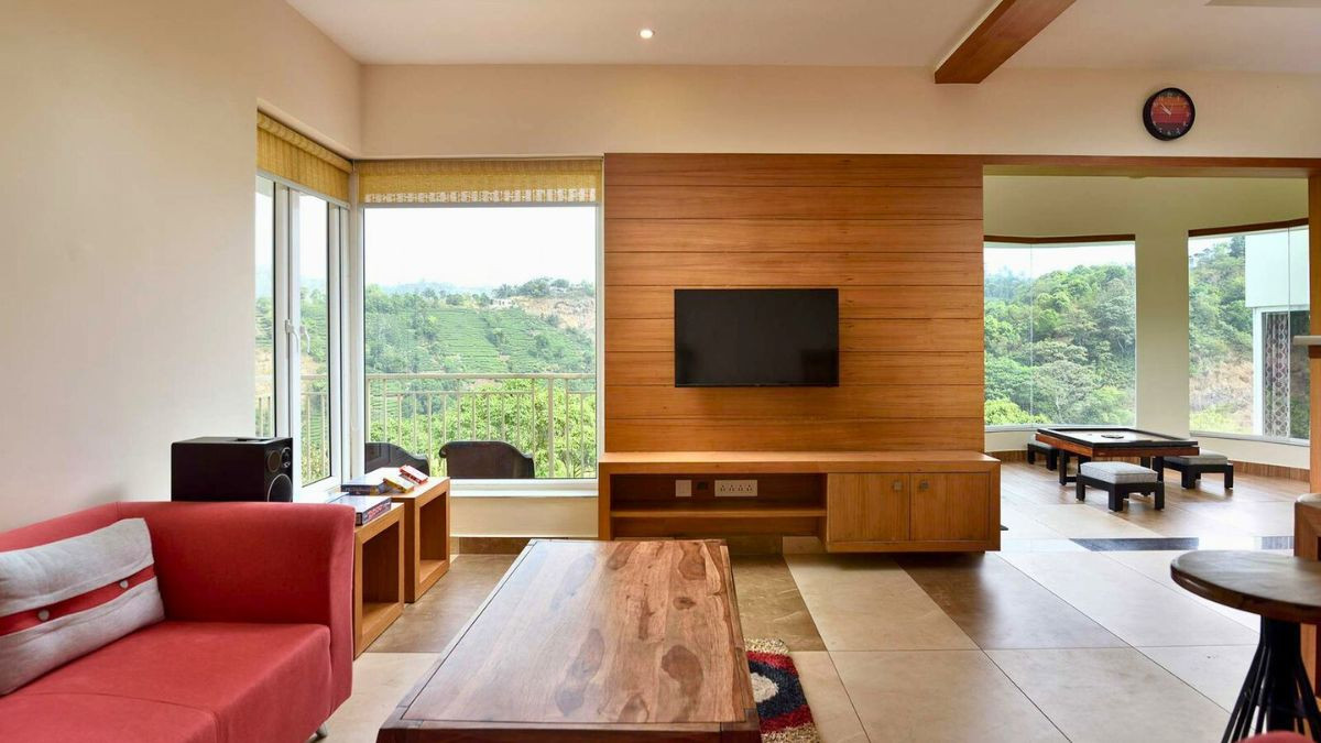 Inside the villa, guests are welcomed into a warm and spacious living room, ideal for unwinding with family and friends after a day in the hills. The convenience of an in-house dining area ensures that mealtimes feel relaxed and homely, whether you're enjoying a hearty breakfast or a cosy dinner together. Step out onto the private balcony to breathe in the fresh mountain air and soak in uninterrupted plantation views, enhanced by a beautifully designed glass-wall section that brings the outdoors closer while still ensuring complete privacy. Evenings at the villa come alive with the charm of a campfire and delicious BBQ sessions, creating the perfect setting for laughter-filled moments. Adding to the comfort, the property is pet-friendly, making it a welcoming retreat for guests travelling with their furry companions. This blend of thoughtful amenities, natural beauty, and peaceful ambience creates a truly memorable plantation stay experience.