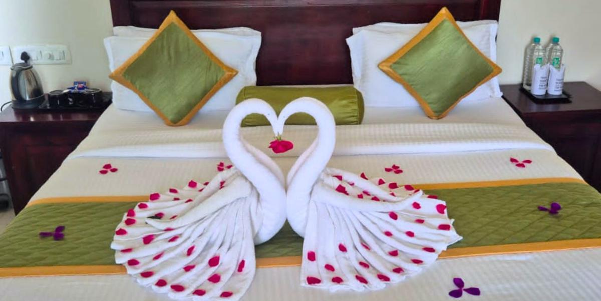 Step into a world where dawn arrives wrapped in silver mist, where the mountains hold you in their gentle embrace, and love lingers in the air like a whispered secret. Welcome to your own private honeymoon sanctuary in the heart of Vagamon’s enchanting Thangalpara — a place where the hills hum lullabies, the valleys breathe poetry, and time slows just for the two of you. Cradled high on a secluded hillside, our retreat offers sweeping views that stretch from emerald valleys to sun-kissed mountain peaks. Here, every villa is a love nest — crafted for intimacy, luxury, and the quiet joy of togetherness. Drift into the warm blanket of stars, steal moments of laughter by the infinity-edge pool as the clouds roll by, and let your hearts bloom in the stillness only the mountains can give. Each of our eight exclusive suites is a harmonious blend of rustic charm and modern indulgence, opening to a world where soft clouds wander through your balcony and the horizon wears a crown of golden light. As the day fades, savour a complimentary candlelight dinner curated just for you — set under a sky dusted with stars or beside lanterns that dance in the evening breeze. In this secluded haven, only the mountains and valleys bear witness to your forever beginning.