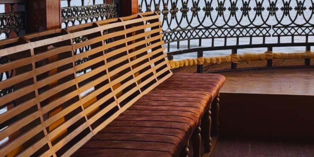 Inside, elegance flows from corner to corner. Three spacious bedrooms embrace you with vintage teakwood finishes, soft linens, and windows that open to uninterrupted river panoramas. At the heart of the boat, the terrace transforms into a living lounge — airy, open, and kissed by the breeze — where stories are shared, laughter drifts, and silence feels like poetry. As morning mist curls over the wide waters, sip fresh coffee while herons glide past and the bridge glimmers in soft light. By evening, retreat to the terrace with friends or family, watching the horizon burn crimson while lanterns glow around you.