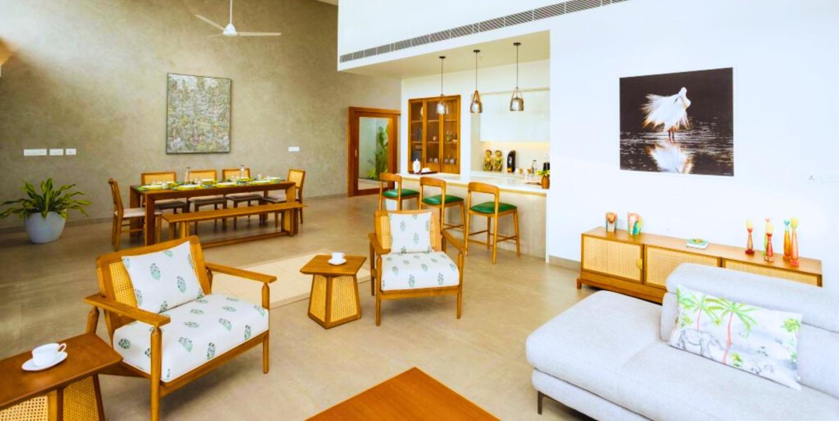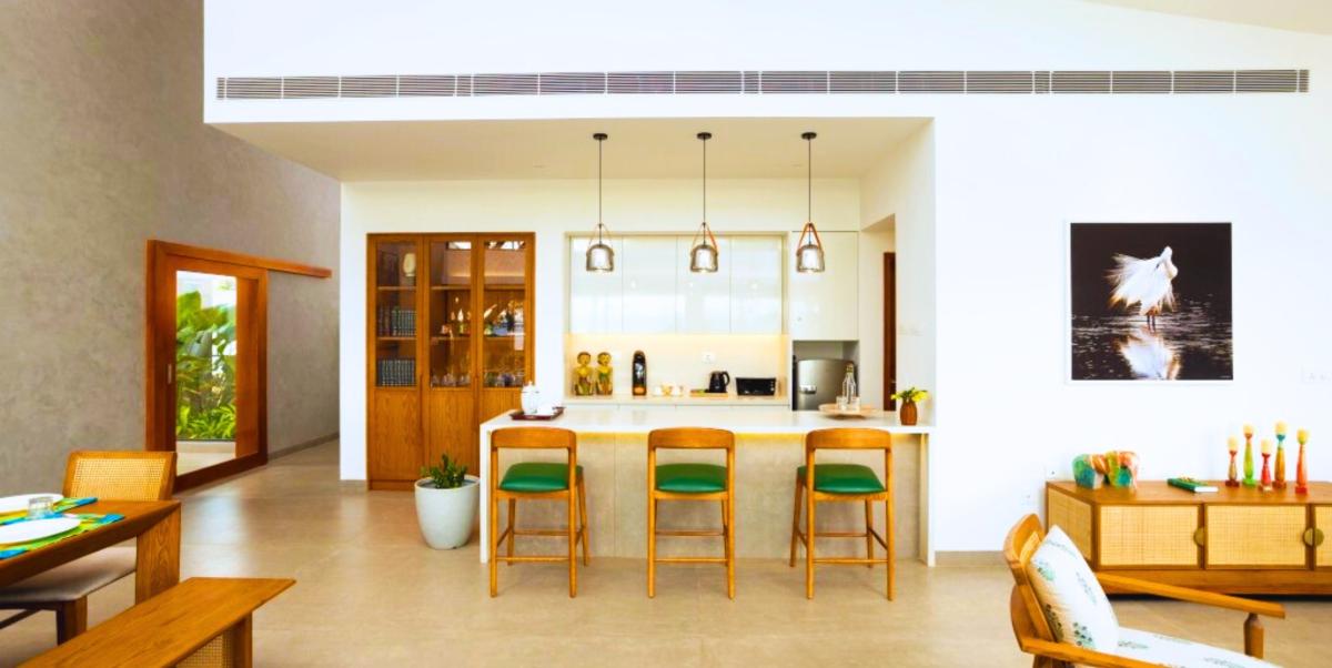 Escape to a riverside haven in Alappuzha, where modern elegance meets Kerala’s timeless backwaters. Designed for those who crave both comfort and connection with nature, this spacious 4-bedroom retreat is perfect for families, friends, or groups seeking a memorable getaway. Wake up to panoramic river views through stunning glass walls that bring the beauty of the flowing waters right into your room. Each bedroom is fully air-conditioned and thoughtfully styled, offering a serene blend of warmth, privacy, and luxury.