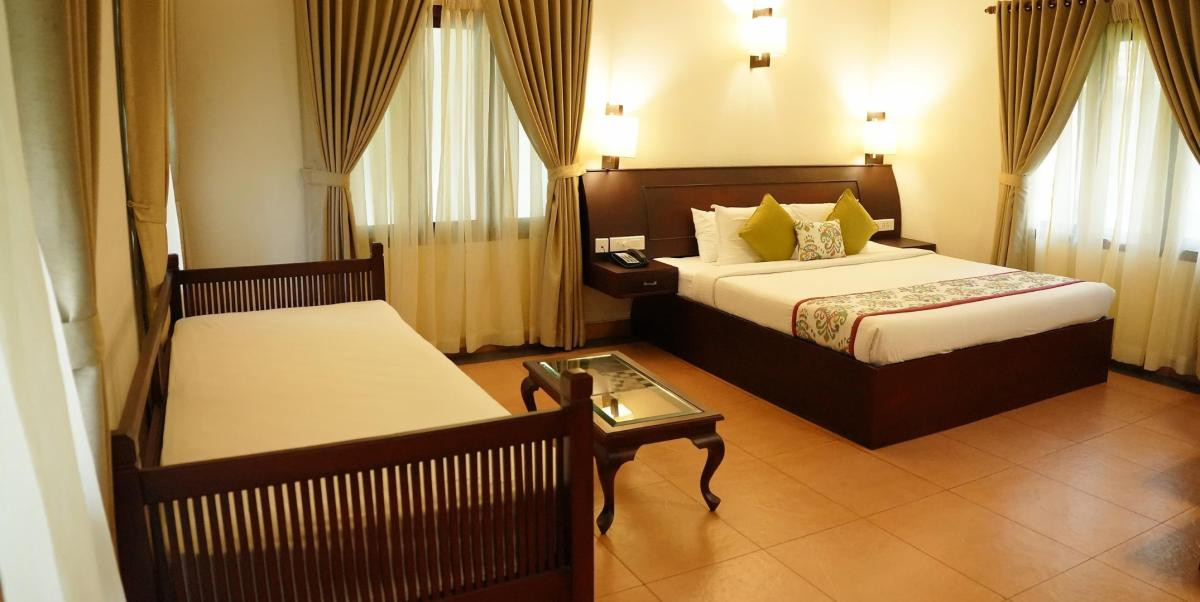 Escape into romance at our Stream-View Suite in Alappuzha, where the gentle murmur of flowing waters becomes the soundtrack to your love story. Crafted for honeymoon couples seeking intimacy and charm, the suite opens to enchanting streamside views, blending nature’s serenity with timeless elegance. Inside, the highlight awaits—an indulgent bathtub with a view of the stream, inviting you both to soak, relax, and lose yourselves in pure bliss.