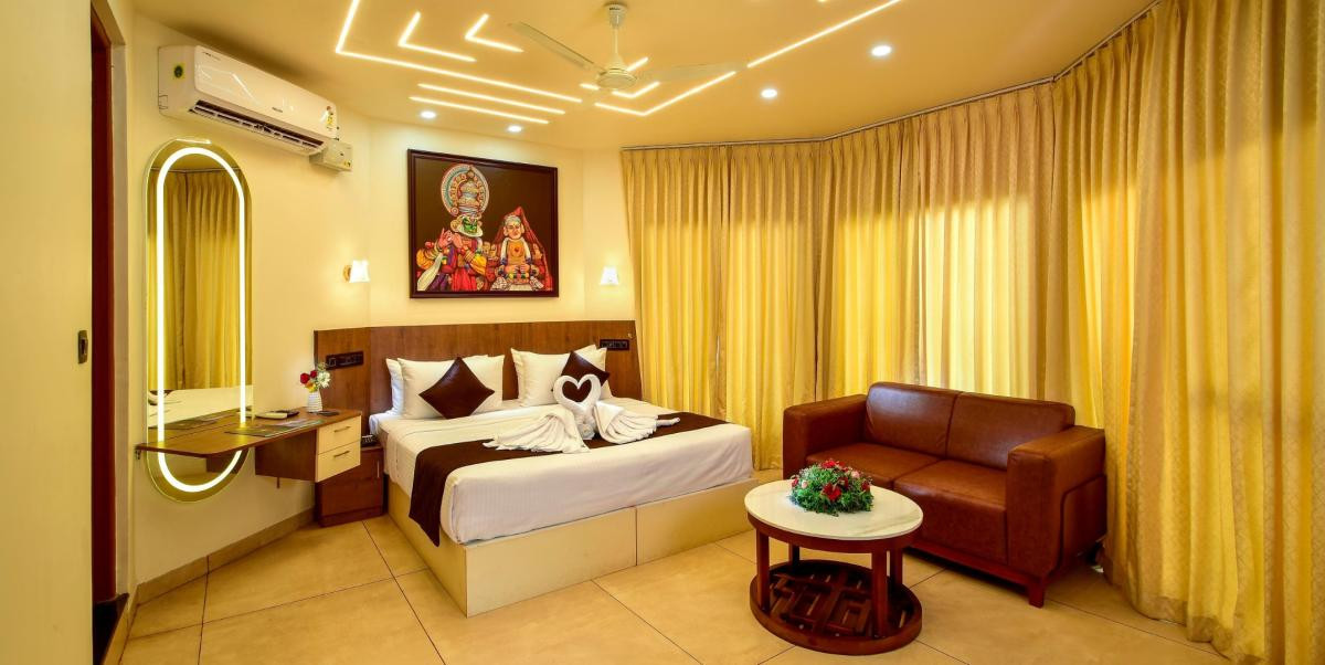 Perched on the enchanting cliffs of Varkala, our premium Sea View Honeymoon Cottage offers couples an intimate escape where the ocean, sky, and soul blend in perfect harmony. Set within a serene Ayur resort, this romantic hideaway not only offers breathtaking views of the Arabian Sea but also enriches your stay with holistic wellness experiences, including rejuvenating spa therapies and calming yoga sessions. From your private balcony, watch the sea shift through shades of gold and blue, creating the perfect backdrop for cherished moments together. Inside, the cottage is designed with cozy elegance, offering all modern comforts for couples who seek both luxury and intimacy. A sparkling swimming pool adds to the charm, allowing you to relax side by side while the salty breeze lingers in the air. Crafted exclusively for honeymooners, this suite promises more than a stay — it’s a soulful journey of love, relaxation, and unforgettable memories by the sea.