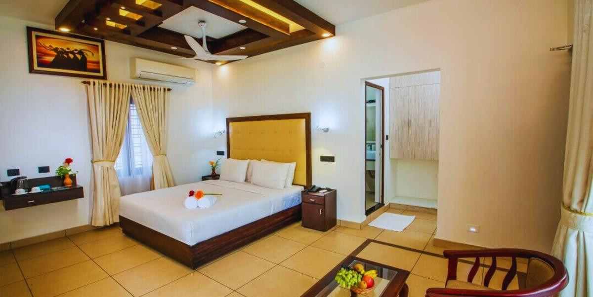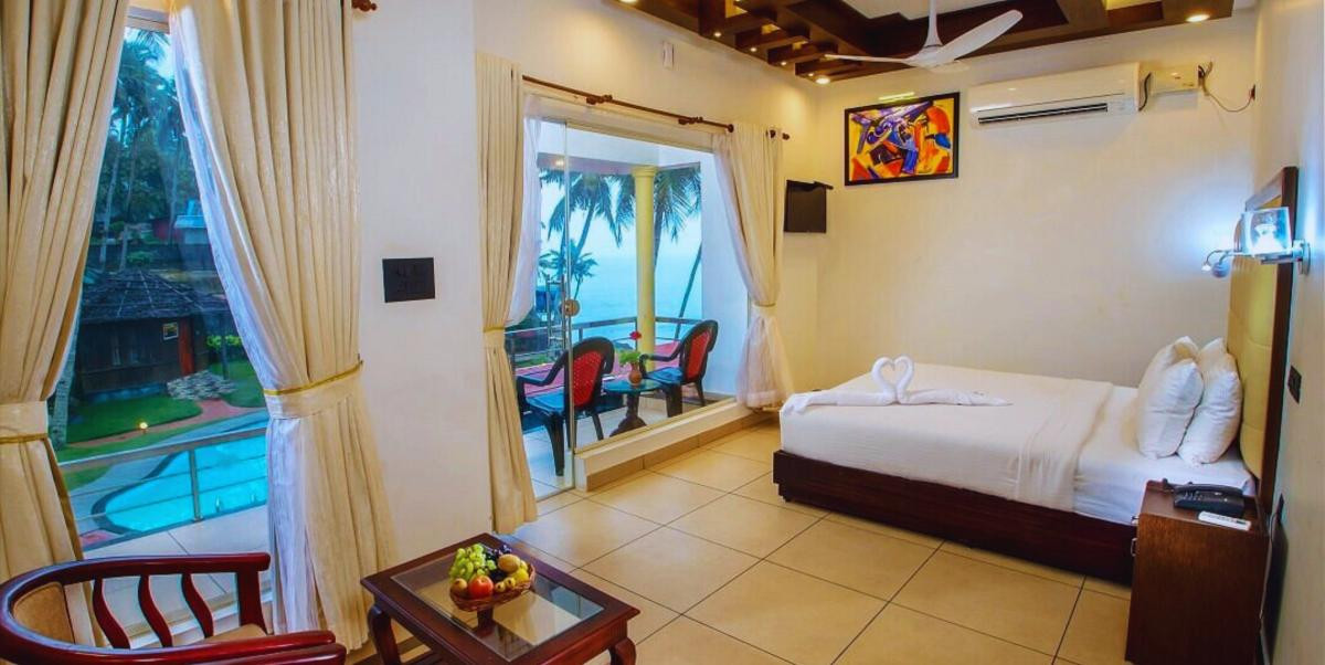 Perched on the enchanting cliffs of Varkala, our premium Sea View Honeymoon Cottage offers couples an intimate escape where the ocean, sky, and soul blend in perfect harmony. Set within a serene Ayur resort, this romantic hideaway not only offers breathtaking views of the Arabian Sea but also enriches your stay with holistic wellness experiences, including rejuvenating spa therapies and calming yoga sessions. From your private balcony, watch the sea shift through shades of gold and blue, creating the perfect backdrop for cherished moments together. Inside, the cottage is designed with cozy elegance, offering all modern comforts for couples who seek both luxury and intimacy. A sparkling swimming pool adds to the charm, allowing you to relax side by side while the salty breeze lingers in the air. Crafted exclusively for honeymooners, this suite promises more than a stay — it’s a soulful journey of love, relaxation, and unforgettable memories by the sea.
