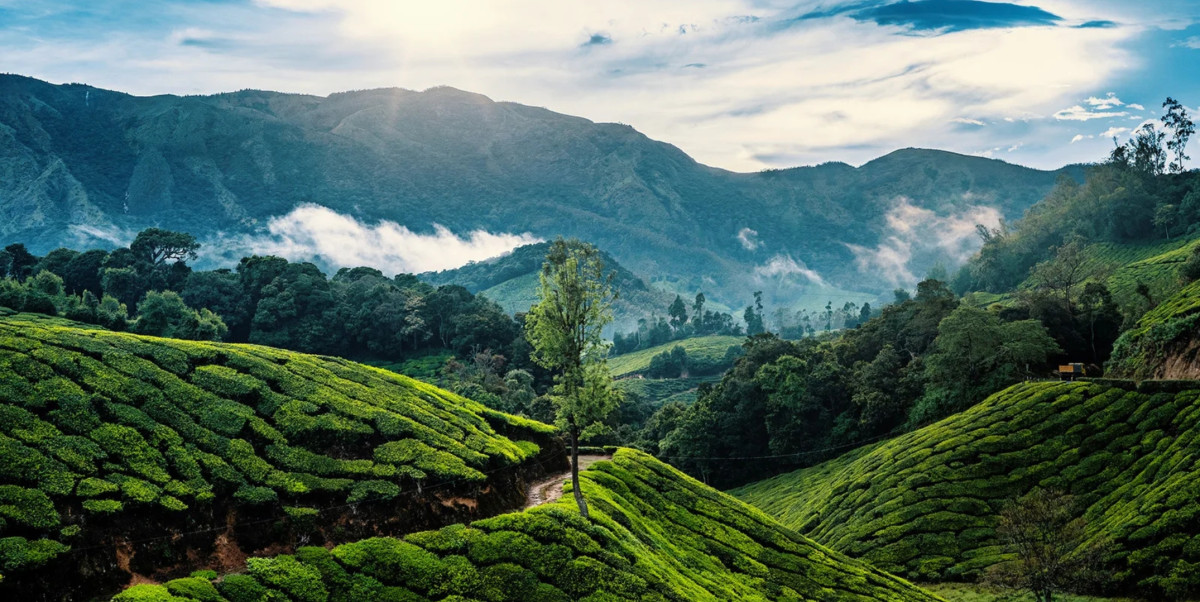 Escape to an enchanting honeymoon hideaway in the heart of Munnar, where love blooms amidst misty valleys and lush green tea garde..