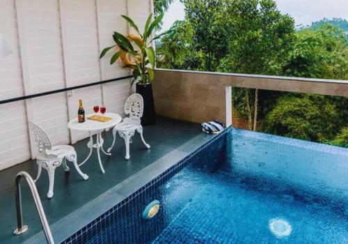 Escape to a romantic honeymoon retreat in Rajakkadu, Idukki, where breathtaking valley views and a sparkling swimming pool set the..