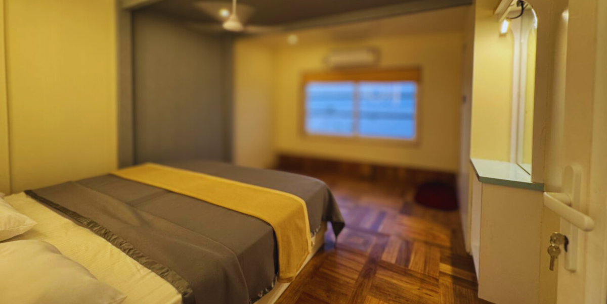 At the heart, a full-length glass-covered lobby stretches along the side, offering panoramic window seating that keeps you connected to the water’s every mood — from the blush of dawn to the violet hush of evening. Watch herons glide past, coconut palms sway lazily, and life along the banks unfold like a slow-moving story. Each of the three generously sized bedrooms is a private cocoon with wide windows framing serene backwater views. Here, soft bedding, vintage woodwork, and delicate lighting invite you to unwind in quiet luxury.