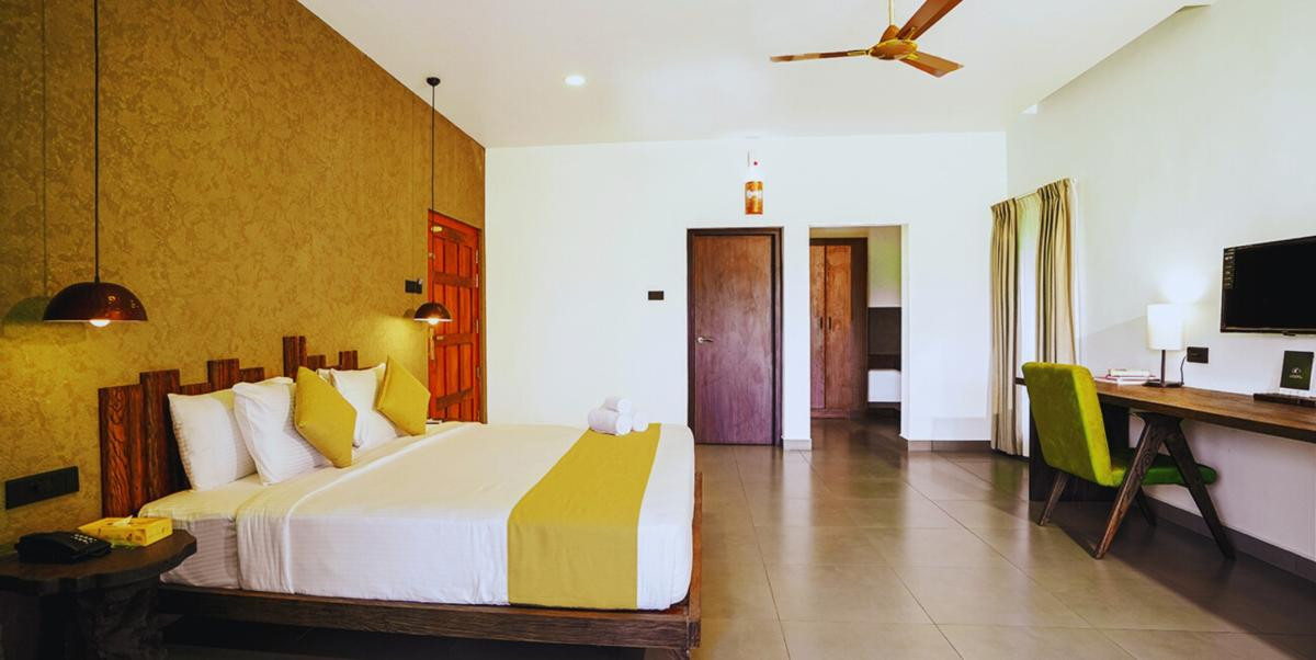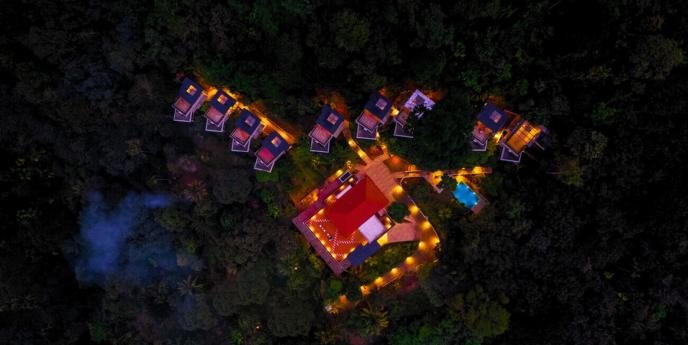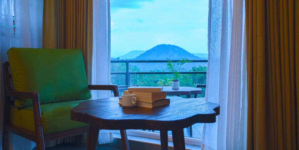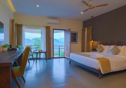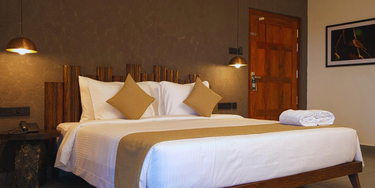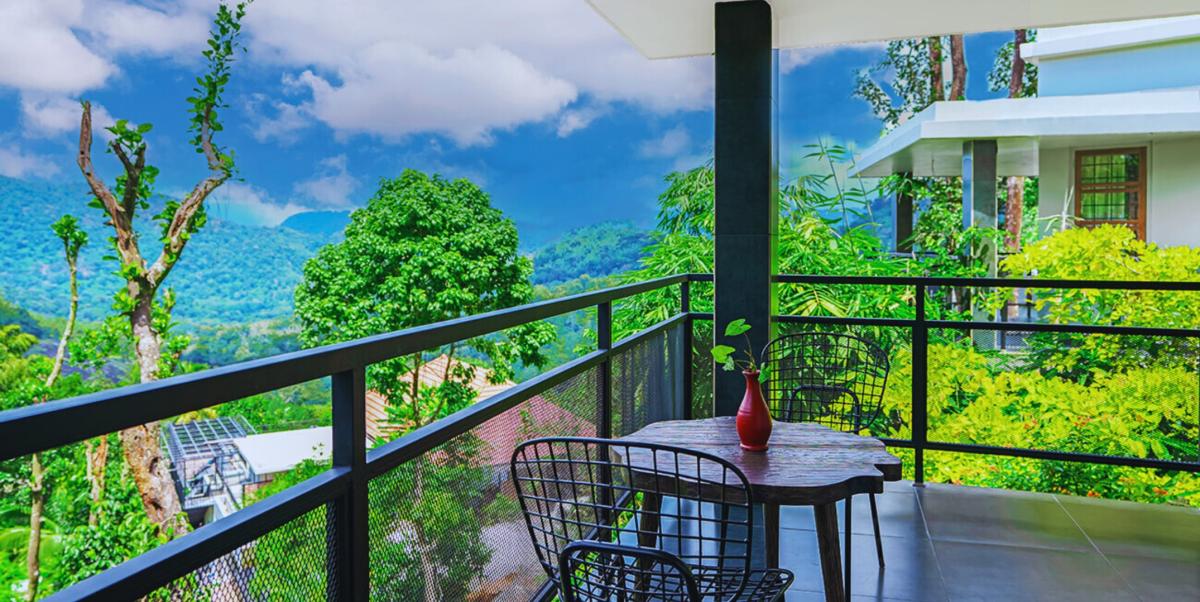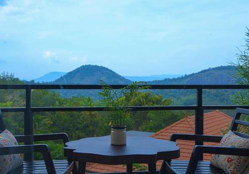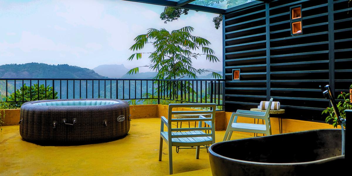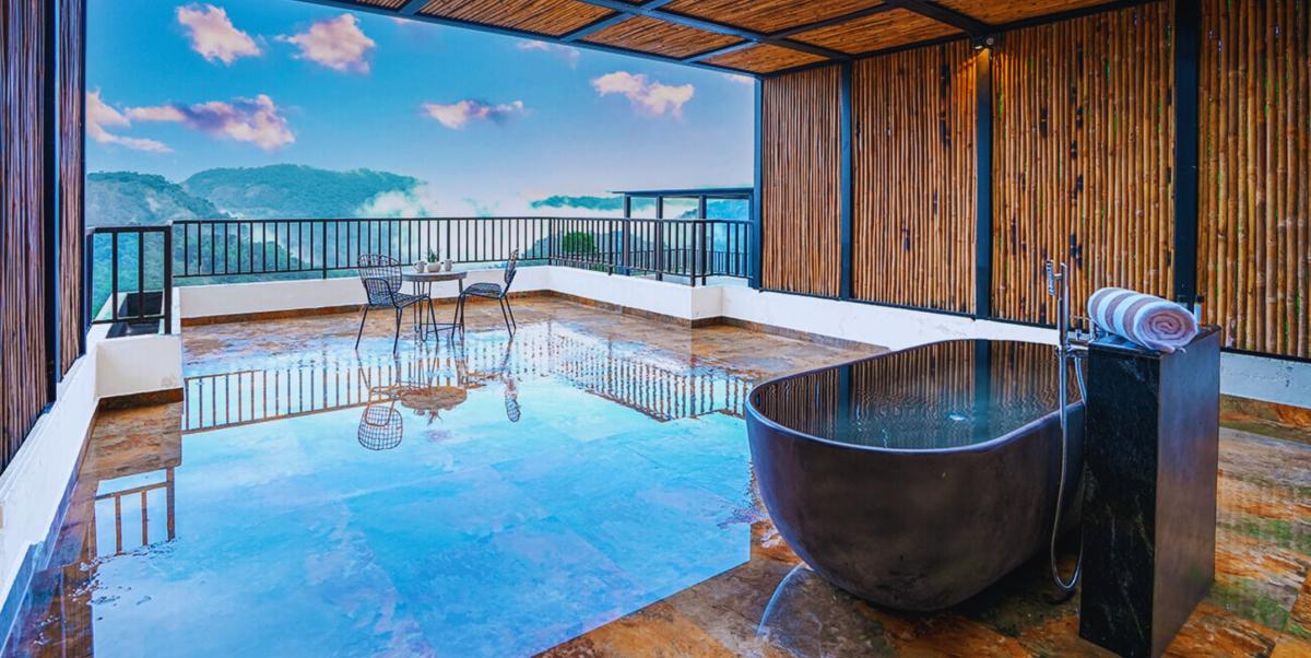 Tucked away amidst whispering treetops and lush greenery, the Honeymoon Suite is a sanctuary designed for couples seeking privacy, romance, and a deeper connection with nature. From the moment you step in, you are embraced by the serenity of the forest, the gentle songs of birds, and the calming embrace of fresh mountain air. Each suite opens out to a spacious private outdoor deck, where a luxurious bathtub and cosy seating area invite you to unwind while soaking in panoramic views of the misty hills. Inside, the suite is elegantly furnished with warm interiors, plush bedding, and modern comforts like air-conditioning, Wi-Fi, and a flat-screen TV-ensuring your stay blends rustic charm with refined indulgence.