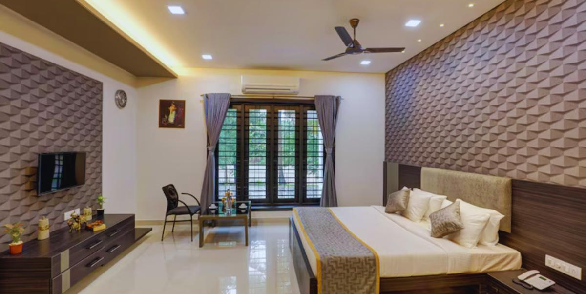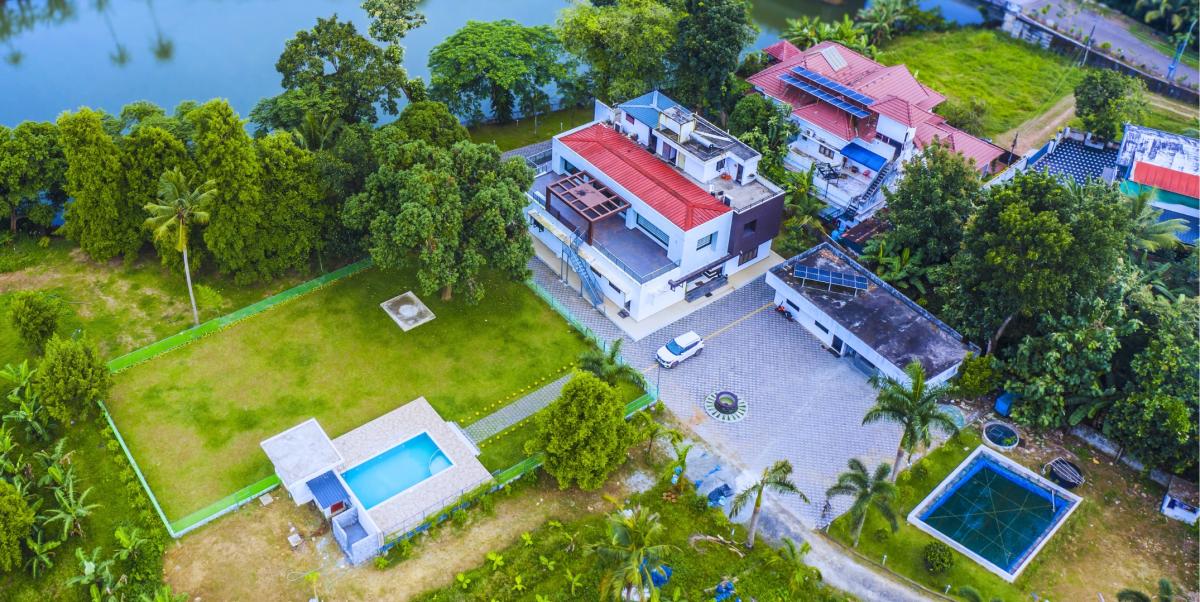 Step into our elegant 5-bedroom villa in Aluva, Ernakulam, crafted to cater to all types of guests with a perfect balance of comfort, style, and modern amenities. This versatile property can be booked as a whole for larger gatherings or as separate units for smaller groups, ensuring flexibility for families, friends, and business travelers alike. Set by the tranquil riverside, the villa offers captivating water views from almost every corner, letting you soak in nature’s beauty without leaving your space. A sparkling private pool adds to the charm, providing the perfect spot for a refreshing swim or leisurely lounging. Inside, each bedroom is designed with contemporary comforts and tasteful interiors, ensuring a relaxing stay. Whether you’re enjoying the serene river at sunrise, unwinding by the pool at sunset, or simply taking in the peaceful surroundings, this villa promises an unforgettable escape in the heart of Aluva.