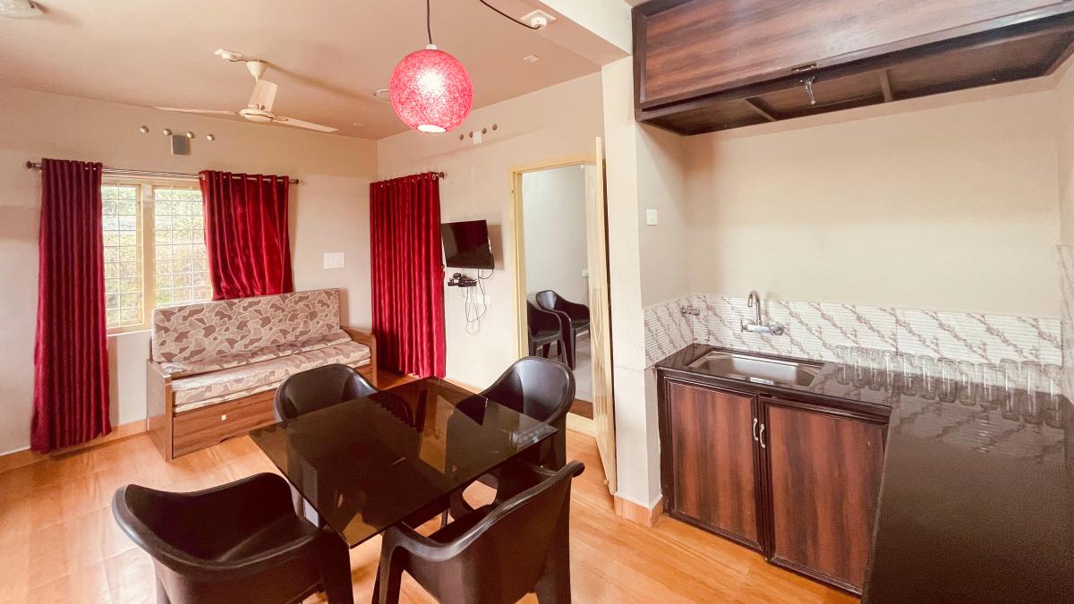 Escape the ordinary and indulge in a luxurious retreat set amidst the lush tea plantations and rolling hills of Vagamon. Our exclusive 4-bedroom villa is thoughtfully designed to offer an unforgettable getaway for families, friends, or small groups of up to 15 guests. Wake up to panoramic views of mist-covered mountains from the comfort of your private balcony room. Breathe in the crisp mountain air as you savor a morning coffee or unwind in the evening with the peaceful sounds of nature all around you. The villa features spacious, elegantly furnished rooms, each crafted to ensure maximum comfort and privacy. An expansive open dining hall provides the perfect setting for shared meals, celebrations, or quiet evenings spent soaking in the serene surroundings. Whether you're looking for a peaceful escape, an adventure in the hills, or a memorable gathering with loved ones, our Vagamon villa offers the perfect balance of luxury, privacy, and natural beauty.
