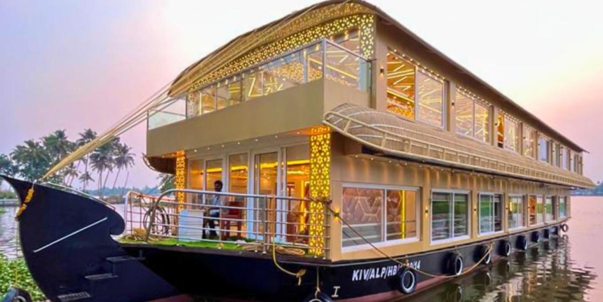 Step aboard a grand 4-bedroom luxury Kerala houseboat — where timeless craftsmanship meets modern indulgence, and life flows to ..