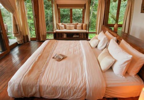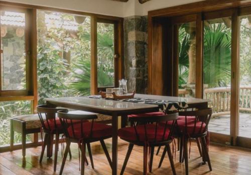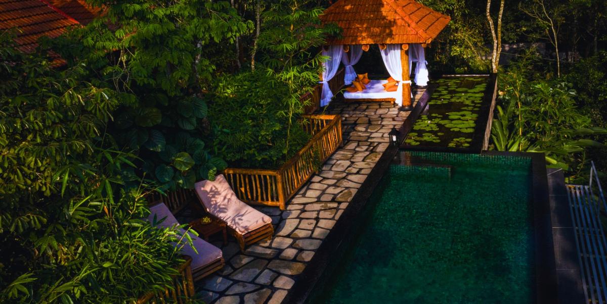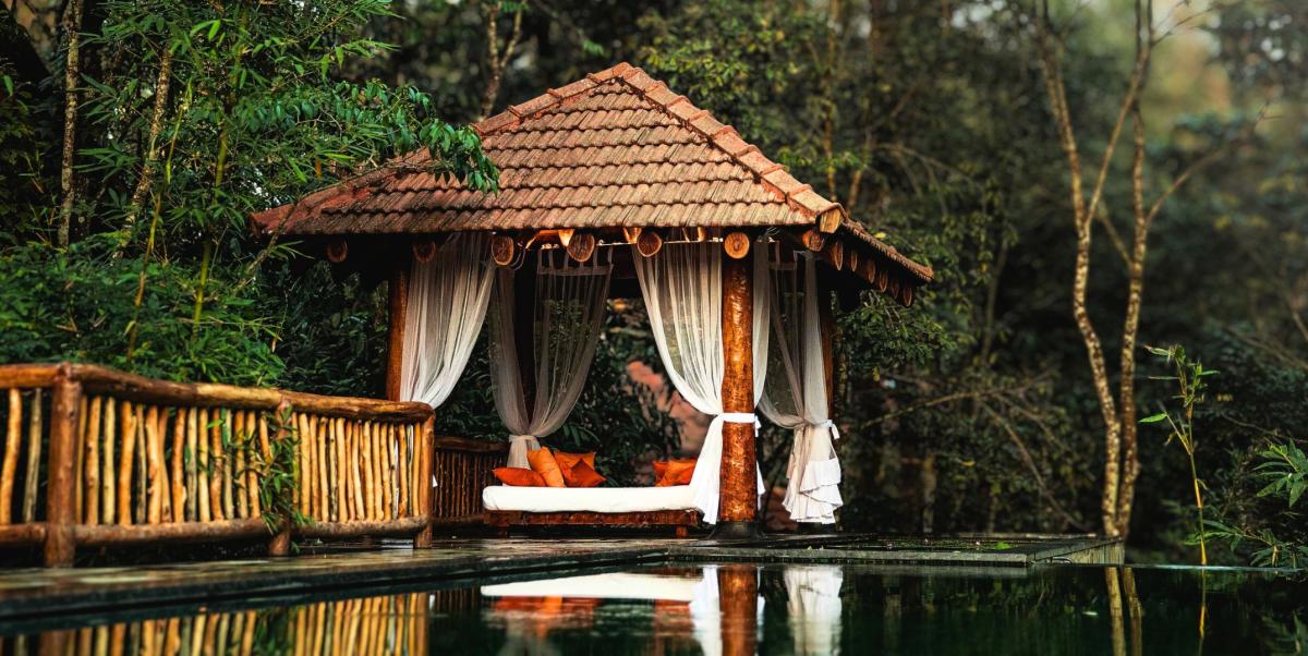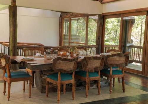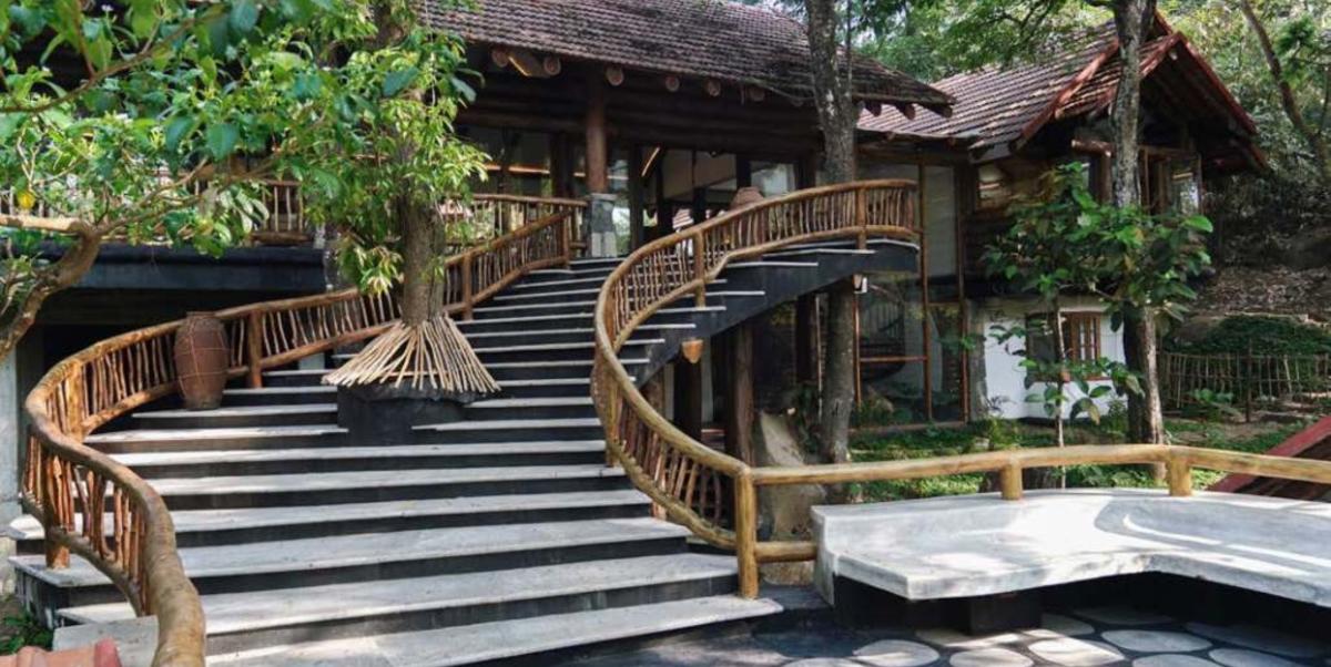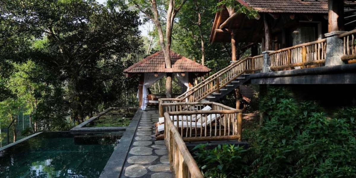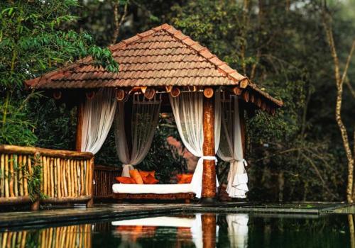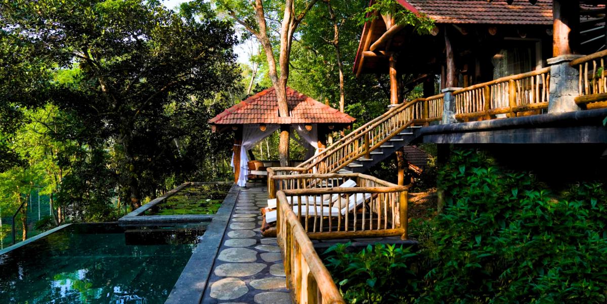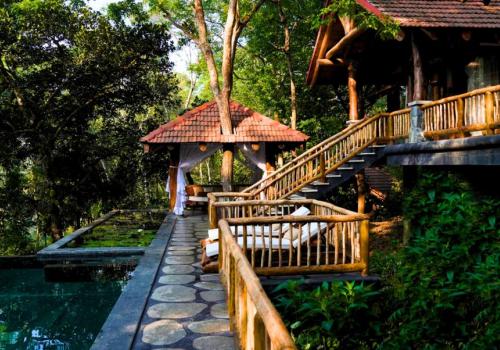 Wake up to the soothing chorus of birds, step out onto verandas overlooking misty greenery, and enjoy the warmth of wood-carved interiors that reflect Kerala’s heritage. Guests can rejuvenate with a refreshing dip in the sparkling swimming pool, savor authentic regional delicacies at the in-house restaurant, or simply relax in forest-inspired rooms that exude serenity. As the day unfolds, take leisurely walks under the shade of towering trees, or end your evenings gazing at starlit skies framed by the surrounding hills.