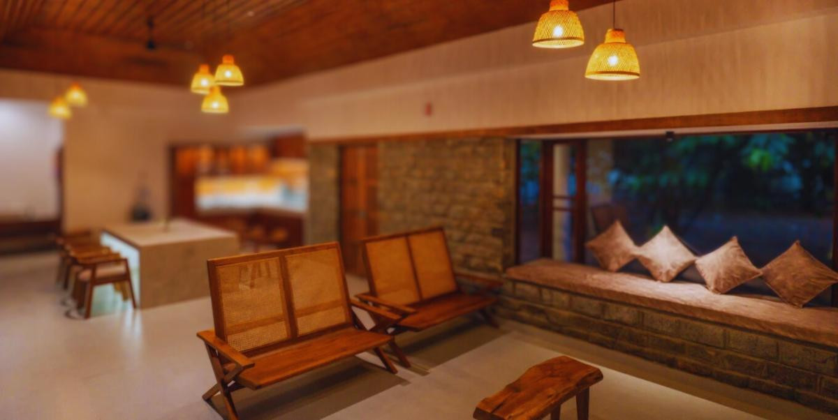 Wake up to golden sunrises over vast fields, take a rejuvenating dip in the infinity pool, and spend your evenings under the stars with a live BBQ experience. The interiors, accentuated by elegant wooden ceilings, offer a warm, rustic charm that immediately feels like home.
