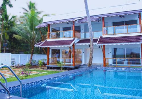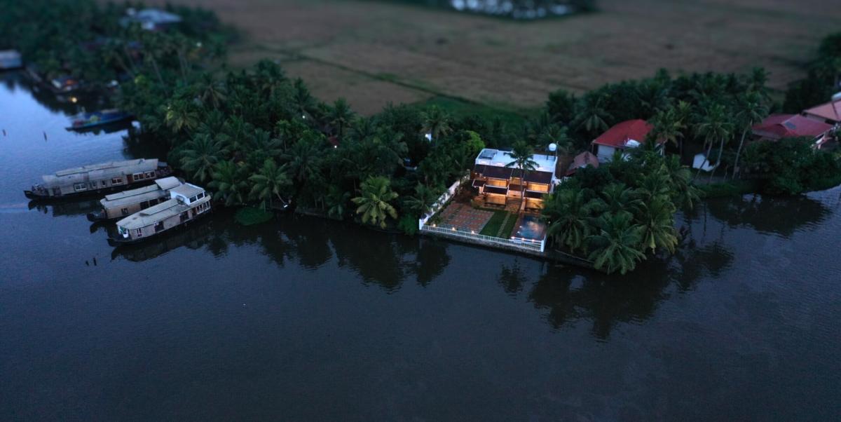 Tucked along the tranquil backwaters of Kumarakom, this elegant 4-bedroom waterfront villa offers a serene and luxurious escape for families, couples, and groups. With spacious rooms that can comfortably accommodate up to 5 guests each, the property is perfect for everything from cozy family get-togethers to intimate celebrations. The villa boasts refined interiors with tasteful décor, modern comforts, and generous living spaces that blend traditional charm with contemporary elegance. Step out onto the breezy verandas, relax by the private swimming pool overlooking the serene waters, or simply take in the soothing rhythm of the lake from the comfort of your room.