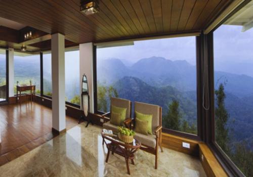 Savor a slow, soulful escape woven with intimate moments made just for two — wander hand-in-hand on serene nature walks, drift together on a boat ride across the tranquil Periyar Lake, or share laughter and whispers over a private candlelight dinner beneath a canopy of stars. Back in your suite, romance lingers in every detail — from a warm, sweet honeymoon cake to a flower-adorned bed that celebrates your love. Through the glass wall of your suite, the misty mountains become a living painting, while your private balcony with elegant seating invites you to sip coffee, watch the clouds drift, and let your hearts beat in unison with the rhythm of nature.