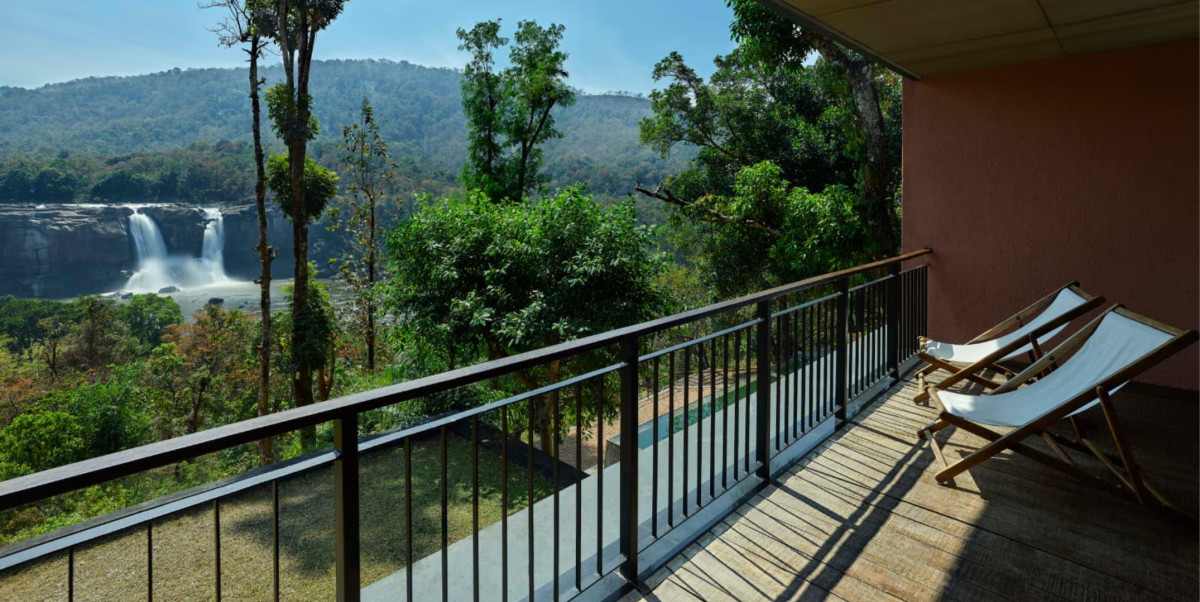 Escape to a world of romance at our Mountain & Falls View Honeymoon Suite near the majestic Athirappilly Waterfalls, where the ..