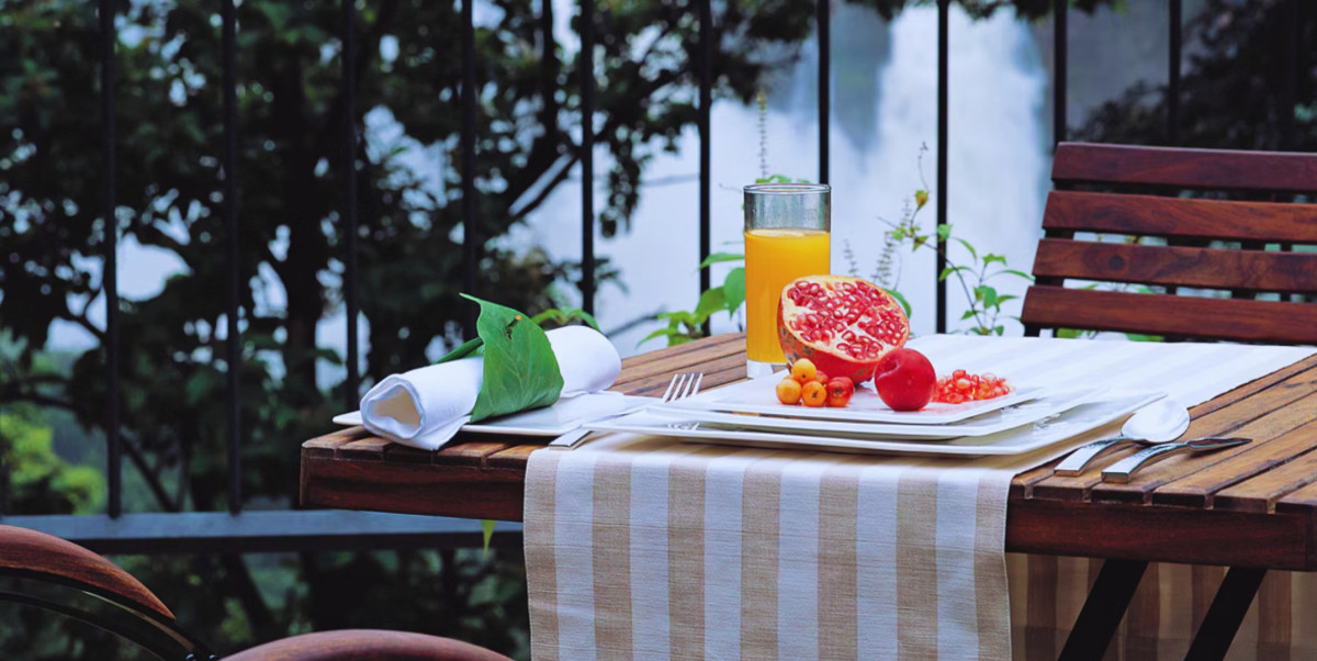 The majestic Athirappilly Waterfalls, our luxury honeymoon suite is a sanctuary where love finds its perfect rhythm. Designed exclusively for couples, every detail invites you to slow down, reconnect, and celebrate your togetherness in the most enchanting way. From the moment you arrive, romance lingers in the air — with a warm welcome that includes a honeymoon cake and a fresh fruit basket to sweeten your stay. Step onto your private balcony and let the sight of the mighty cascades and drifting mist become the backdrop to your love story. As the waters roar with eternal passion, every glance, every touch feels wrapped in nature’s embrace.